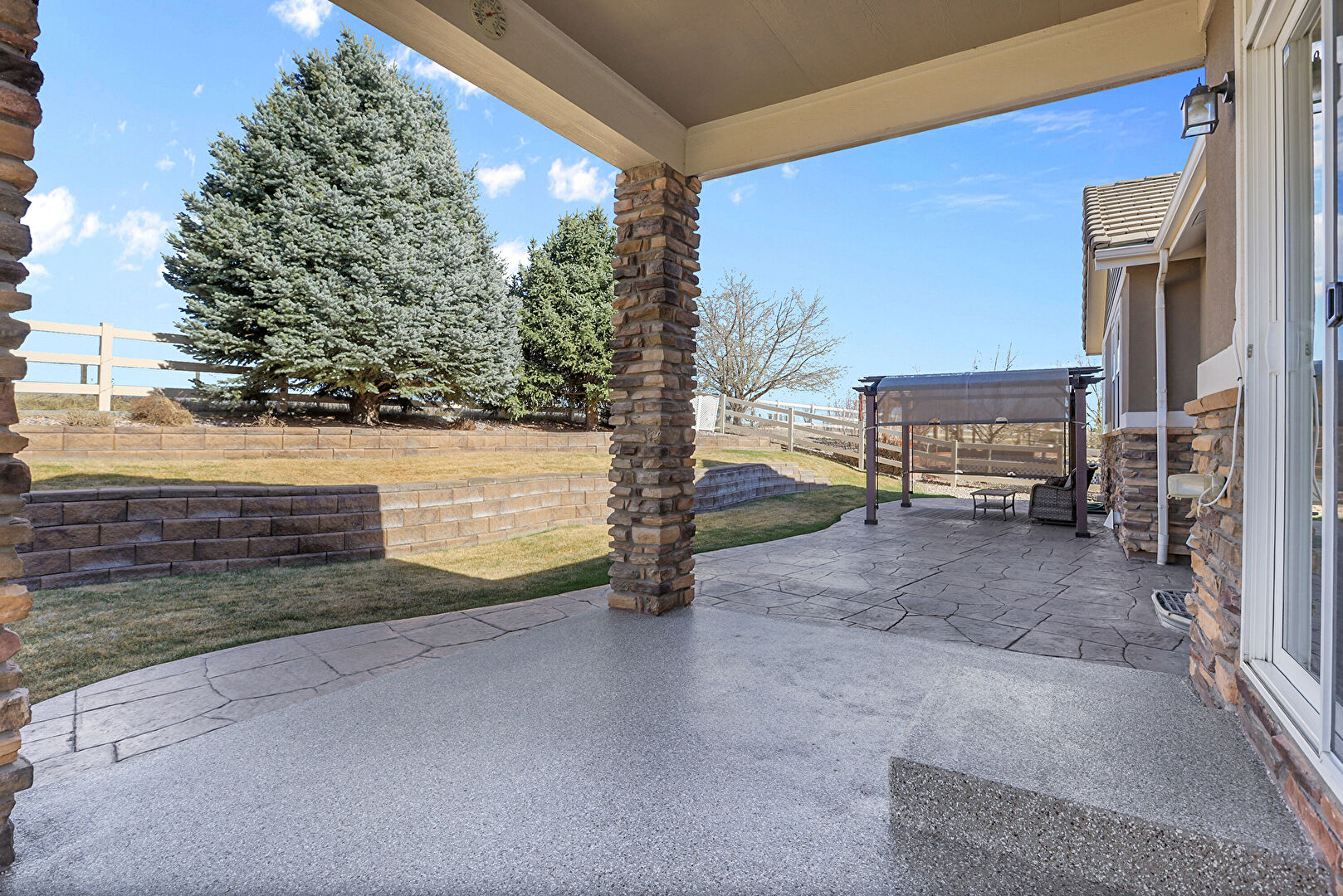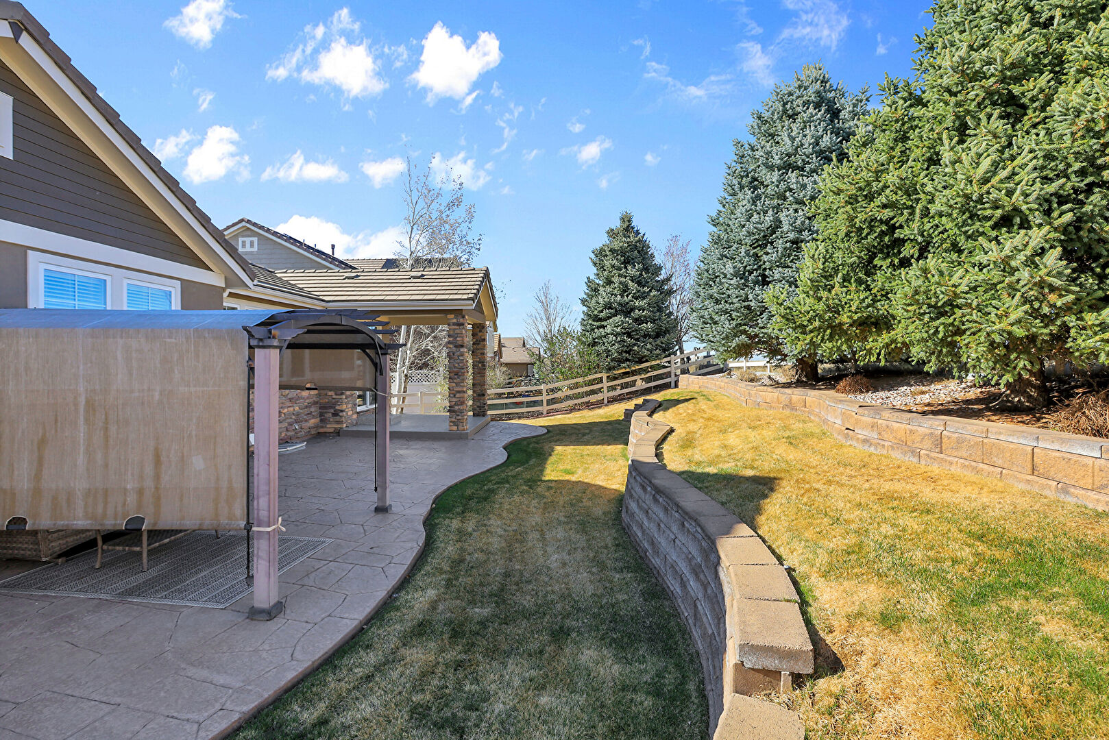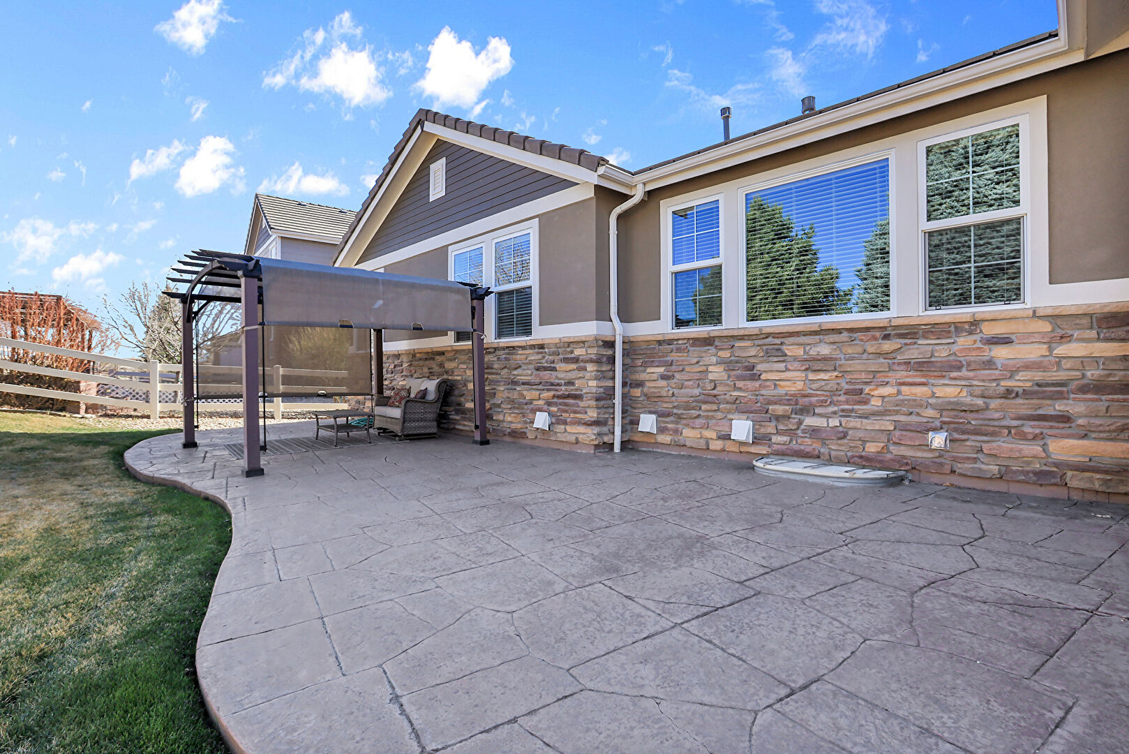 Fence, Grill, Lawn, Outdoor Living Space, Patio, Fence, Gazebo