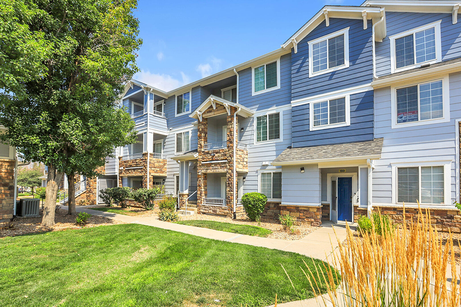 Central Ac, Downspout, Gutters, Horizontal Siding, Lawn, Residential View, Stone Siding