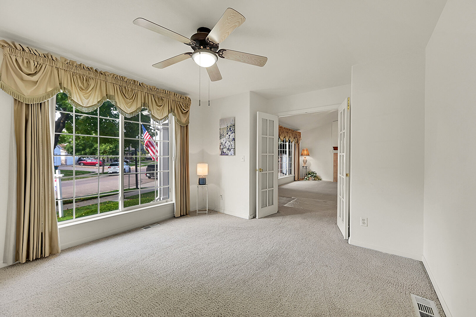 Carpet,  Ceiling Fan,  Drywall,  Natural Light,  Vent, Baseboards Wall