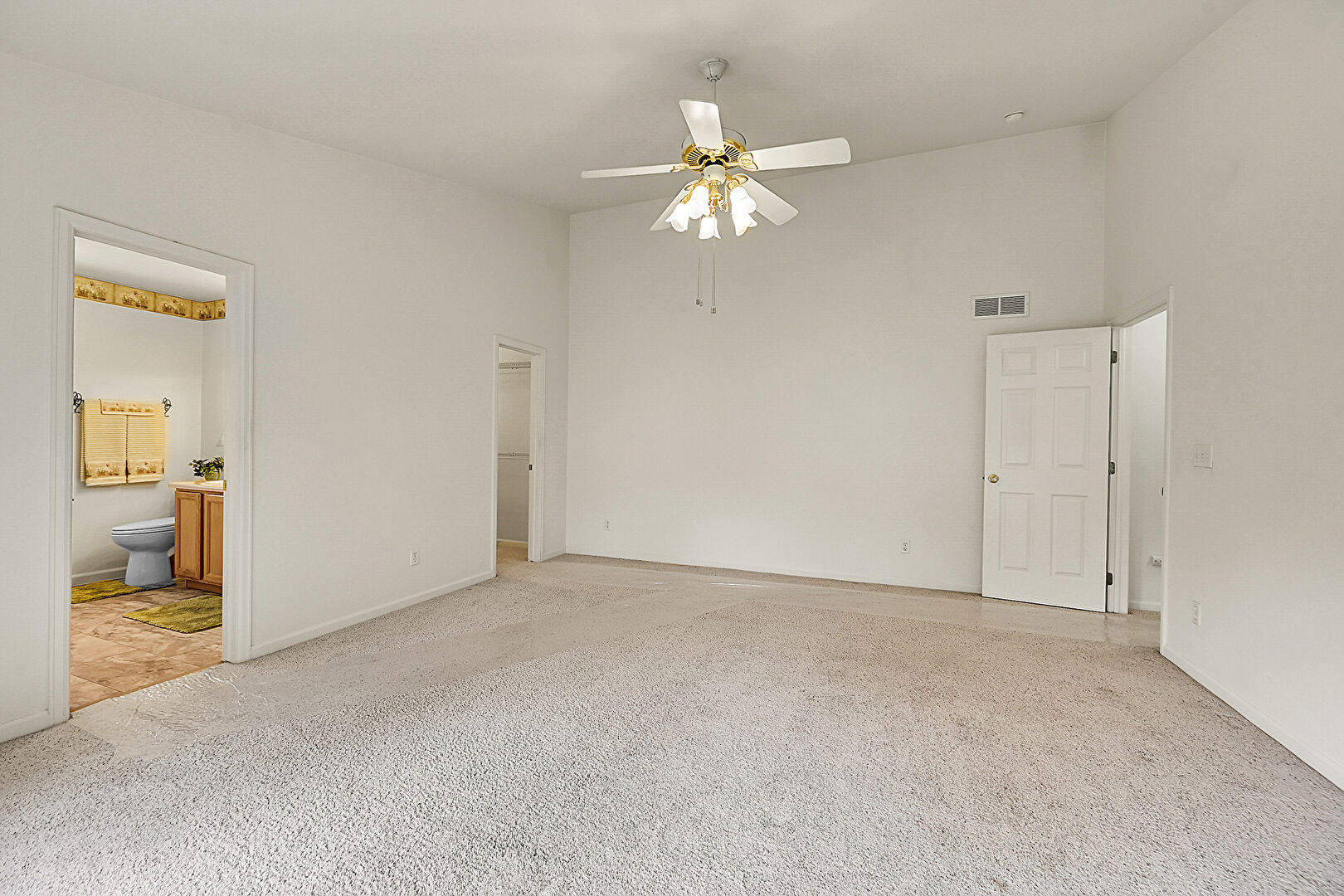 Baseboards Wall,  Carpet,  Ceiling Fan,  Closet,  Drywall,  Ensuite Bathroom,  High Ceiling,  Vaulted Ceiling,  Vent,  Walk In Closet, Carpet, Drywall, Natural Light