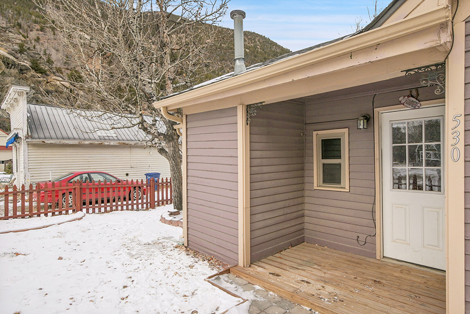 Downspout, Fence, Gutters, Horizontal Siding, Mountain View, Porch, Shingle Roof, Downspout, Fence, Mountain View, Shingle Roof