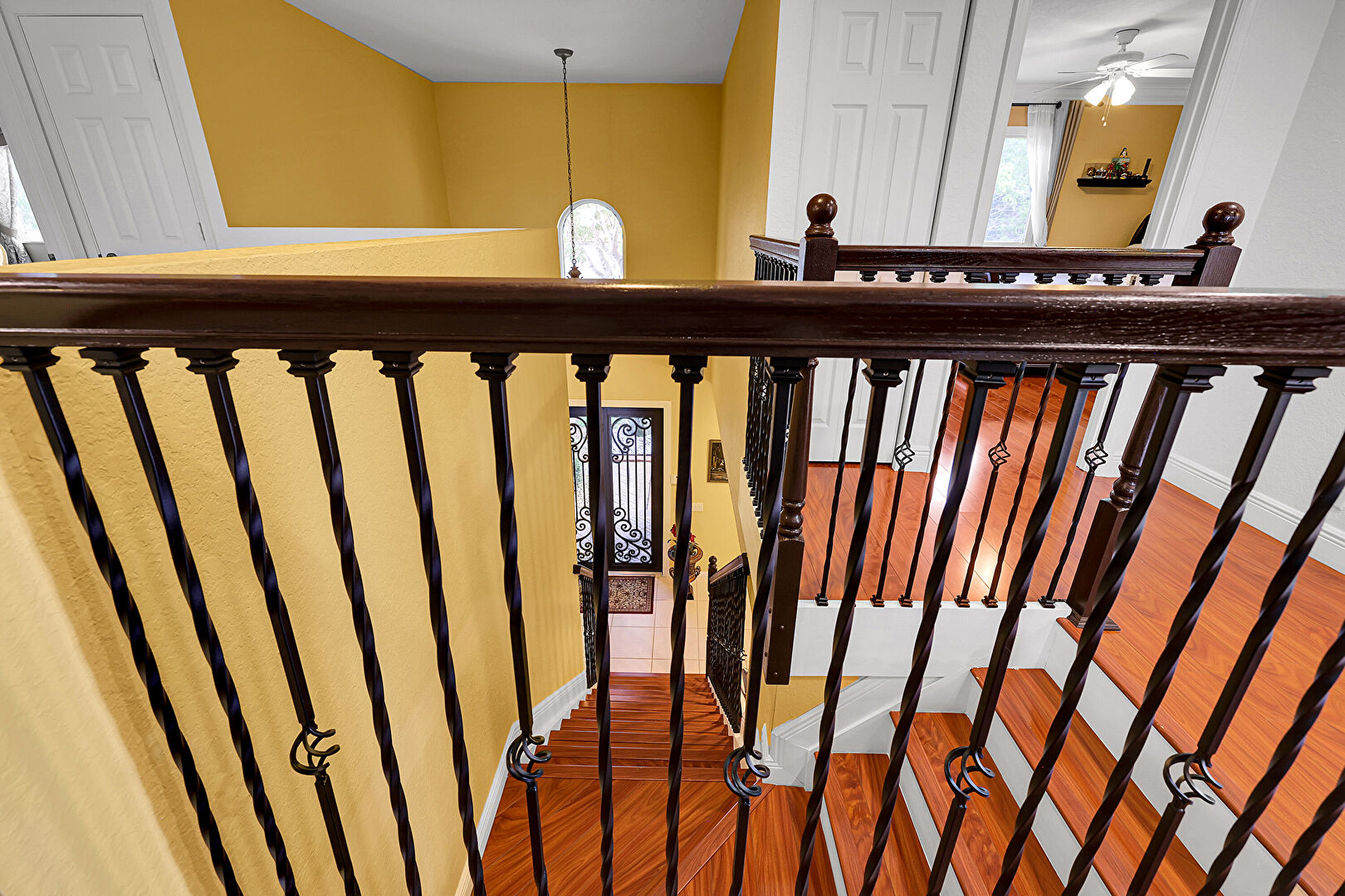 Baseboards Wall, Ceiling Fan, Crown Molding, Drywall, Natural Light, Notable Chandelier, Recessed Lighting, Smoke Carbon Monoxide Detector, Stairs, Tile Floor, Vent, Wood Finish Floor, Baseboards Wall, Stairs