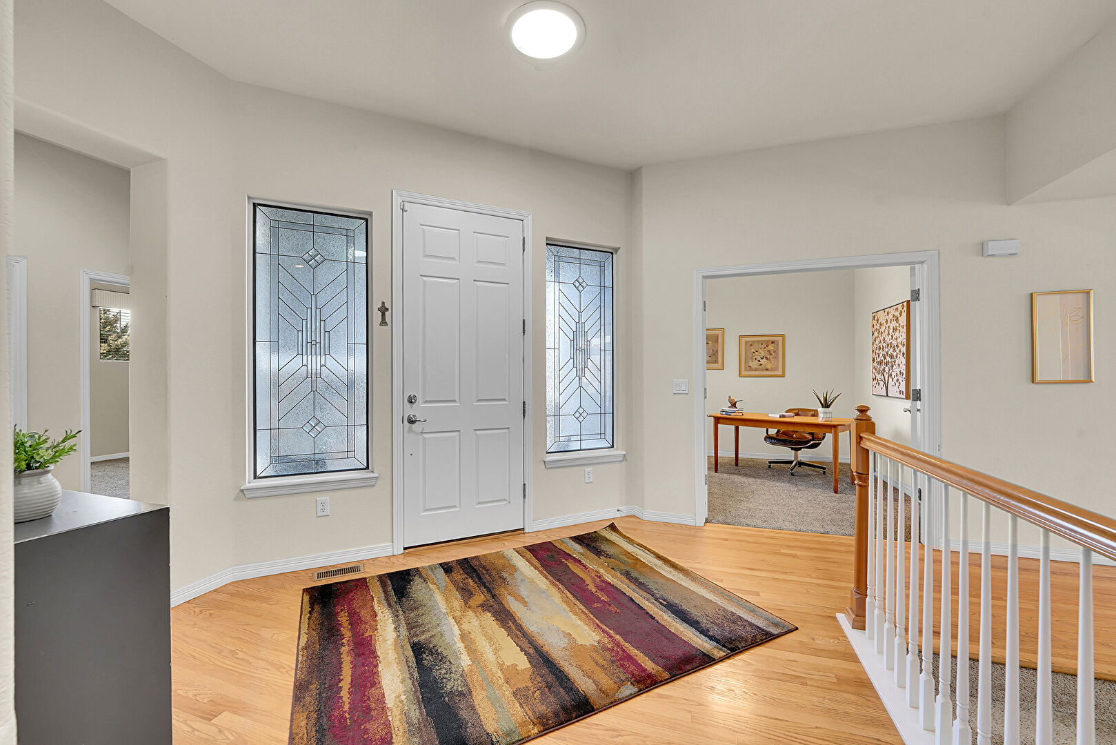 Baseboards Wall, Carpet, Ceiling Fan, Drywall, Fireplace, Natural Light, Notable Chandelier, Office Area, Tray Ceiling, Vent, Wood Finish Floor, Built In Shelves, Natural Light, Notable Chandelier