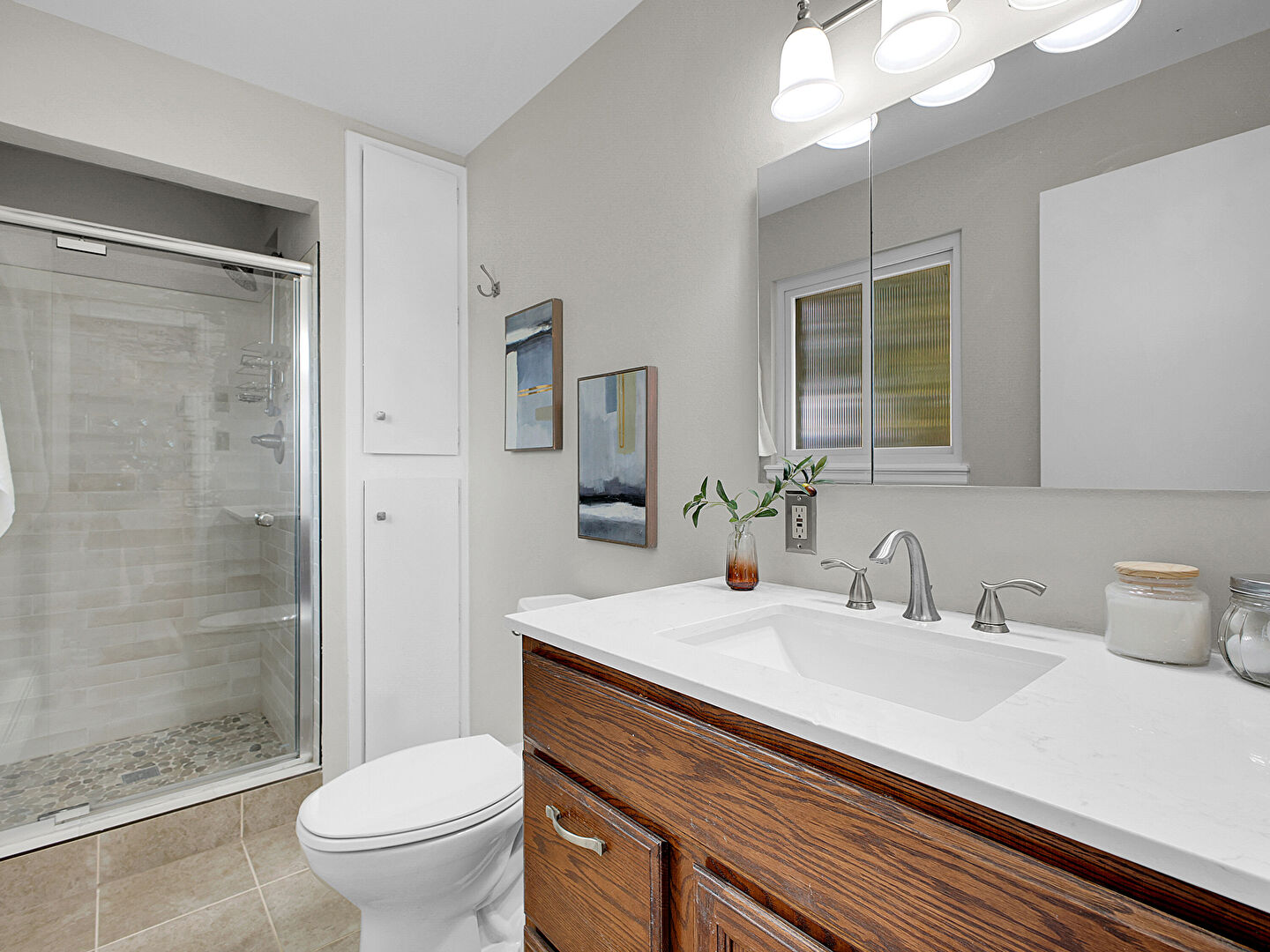 Drywall, Tile Floor, Vanity, Full Bathroom