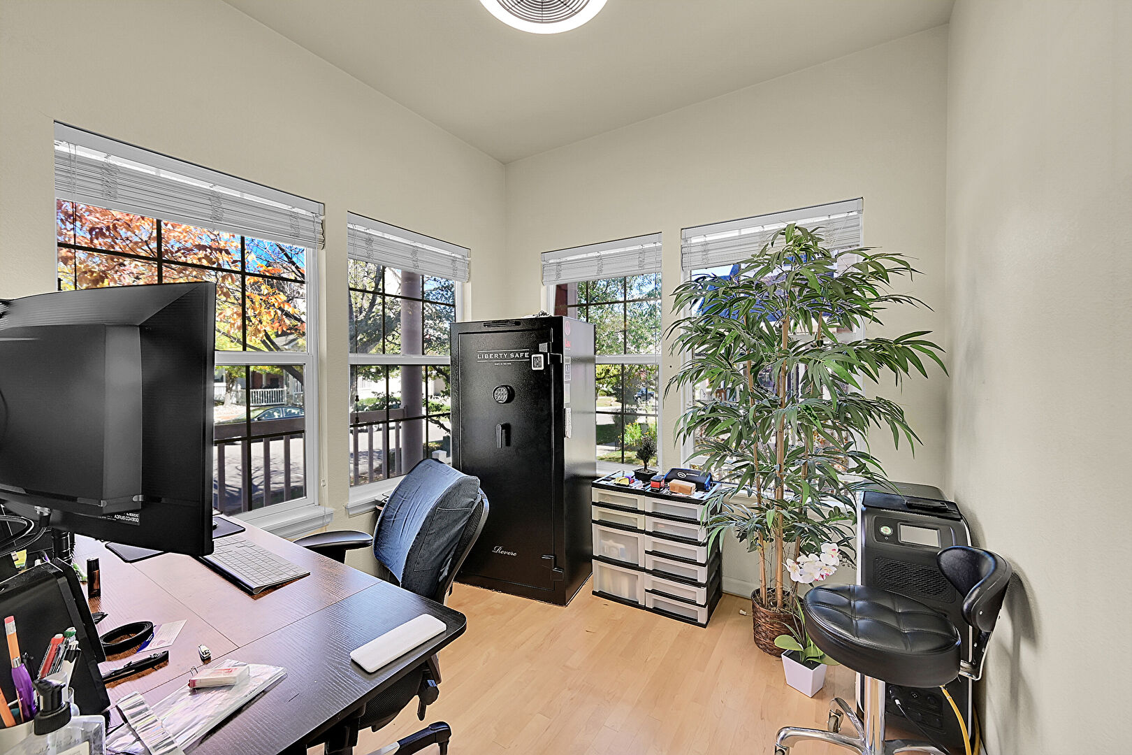 Drywall, Office Area, Wood Finish Floor, Natural Light