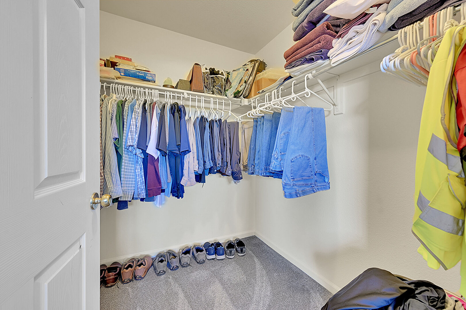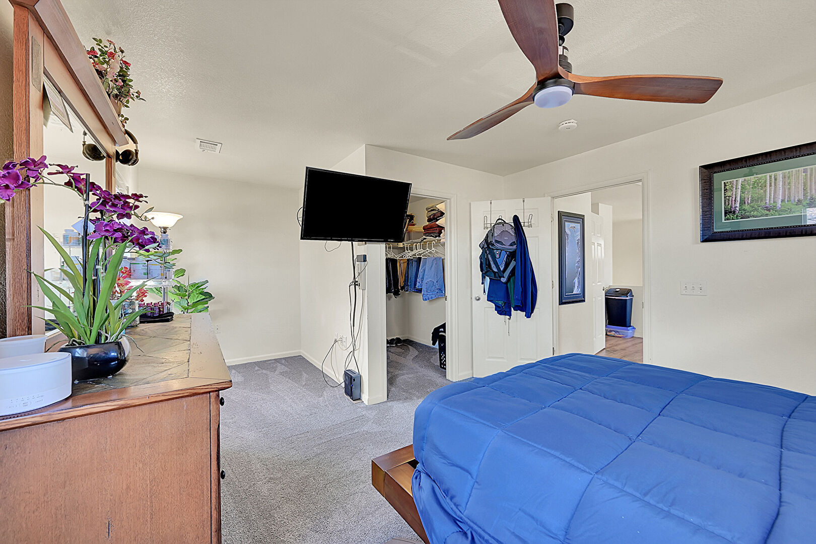 Baseboards Wall, Carpet, Ceiling Fan, Drywall, Natural Light, Vent, Walk In Closet, Carpet, Textured Ceiling