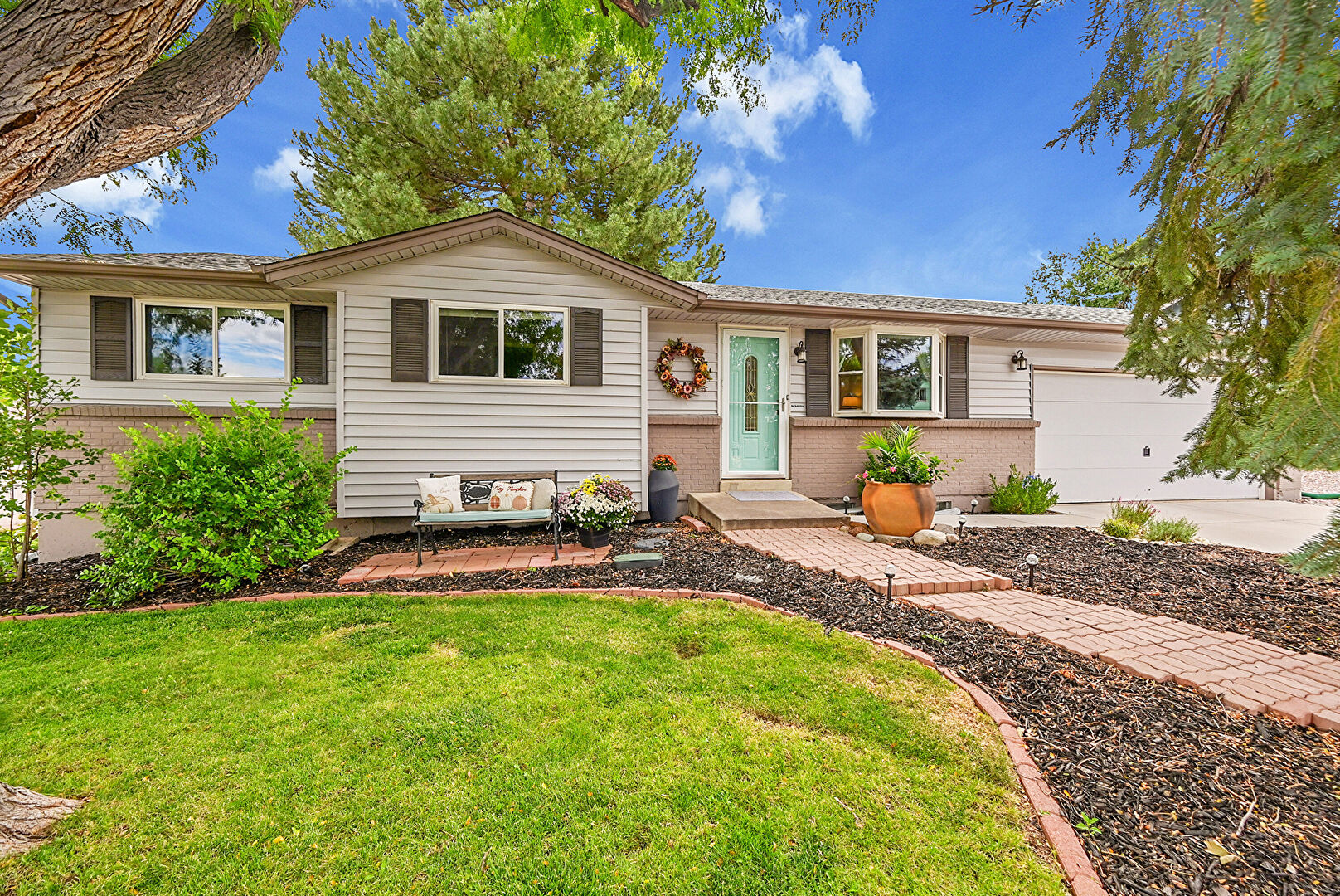 Brick Siding, Concrete Foundation, Downspout, Driveway, Fence, Gutters, Horizontal Siding, Lawn, Shingle Roof, Stoop, Concrete Foundation, Gutters, Horizontal Siding, Lawn