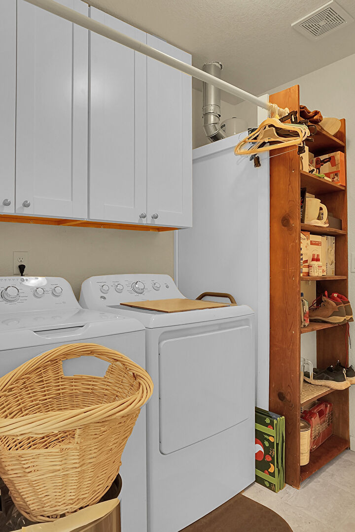 Drywall, Laundry, Textured Ceiling, Tile Floor, Vent