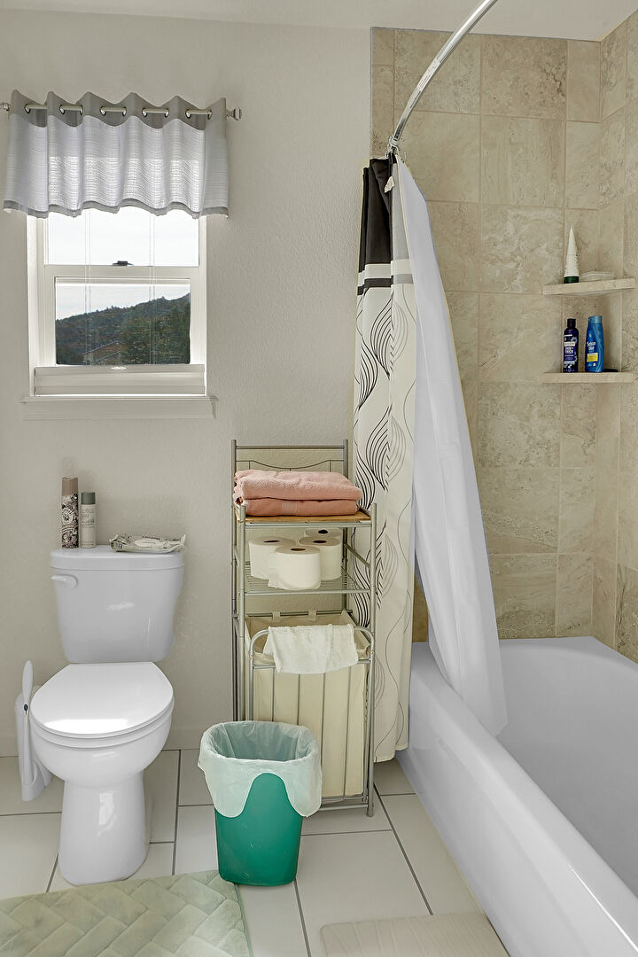 Baseboards Wall, Drywall, Full Bathroom, Natural Light, Tile Floor, Combined Bath Shower, Vanity