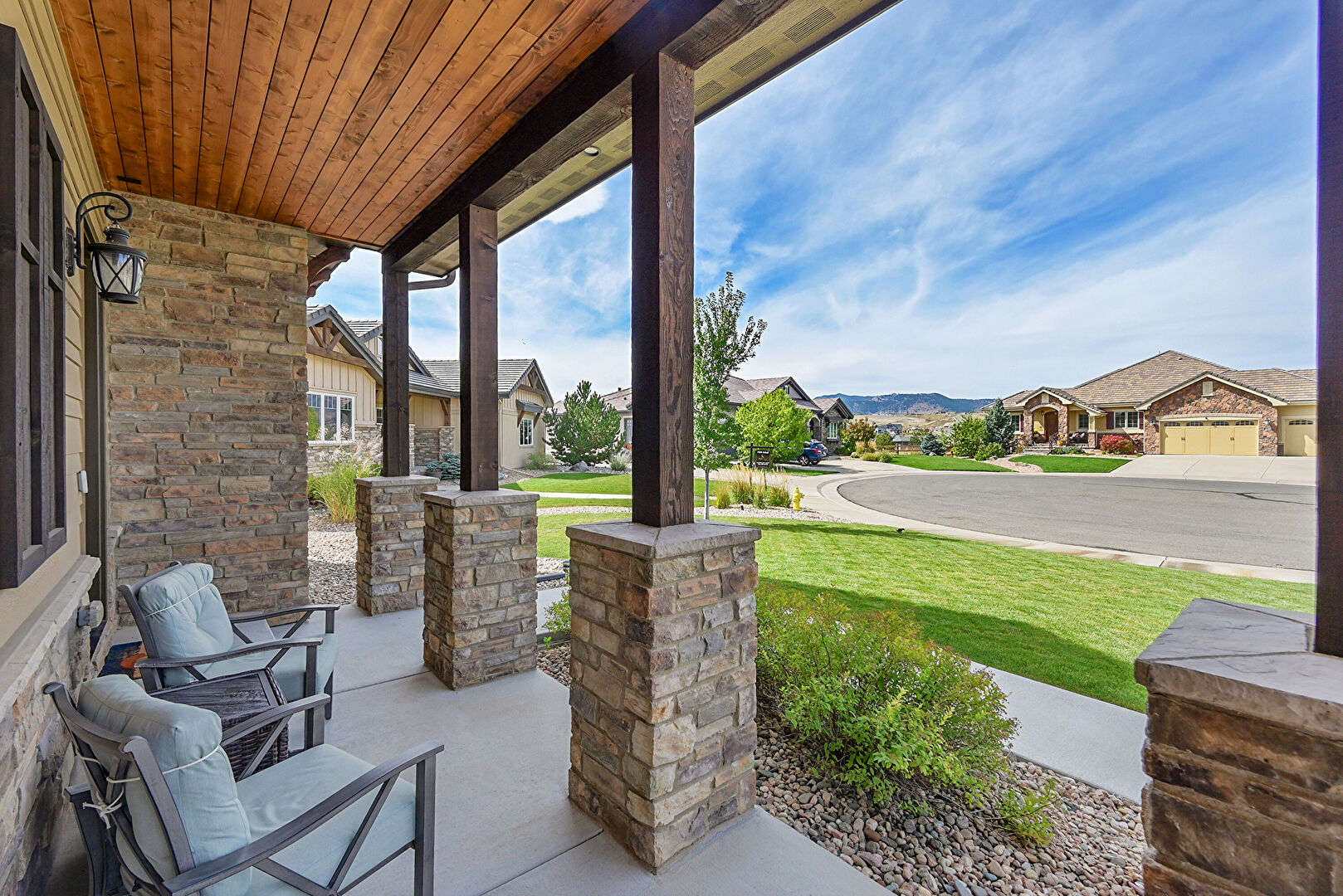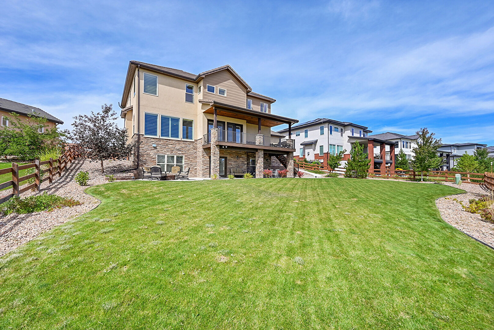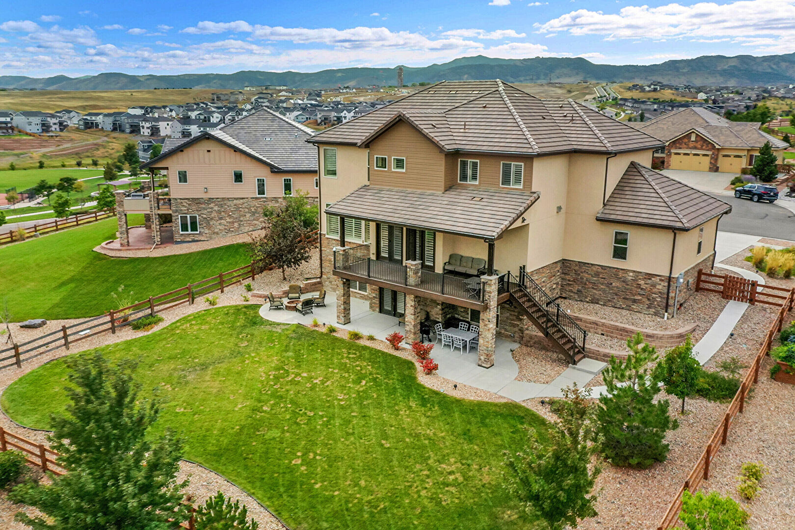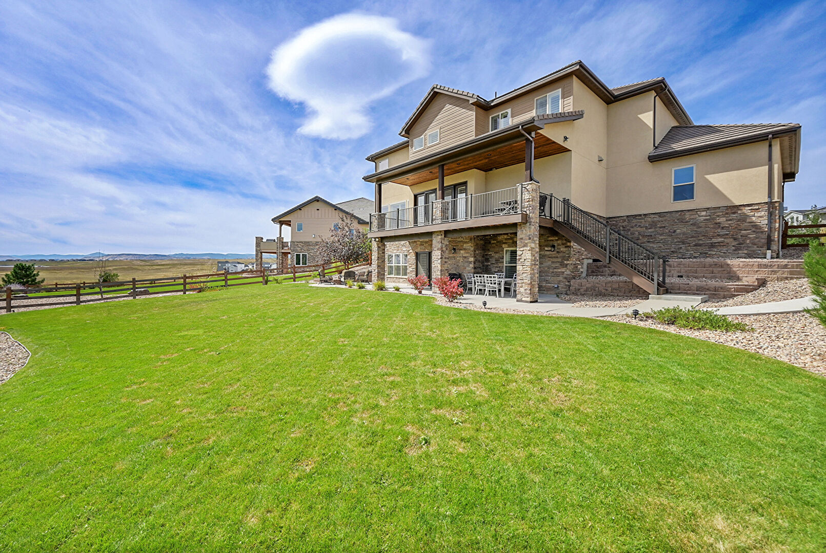 Balcony, Basement Walk Out, Deck, Downspout, Fence, Gutters, Horizontal Siding, Lawn, Mountain View, Outdoor Dining Area, Patio, Residential View, Stairs, Stone Siding, Stucco Siding, Tile Roof, Fence, Stairs, Stone Siding, Stucco Siding
