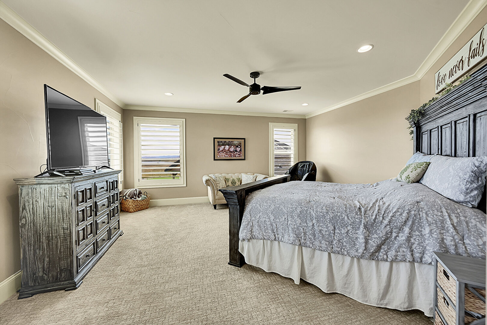 Baseboards Wall, Carpet, Ceiling Fan, Crown Molding, Drywall, Ensuite Bathroom, Natural Light, Recessed Lighting, Vent, Carpet, Ceiling Fan, Drywall, Natural Light, Recessed Lighting