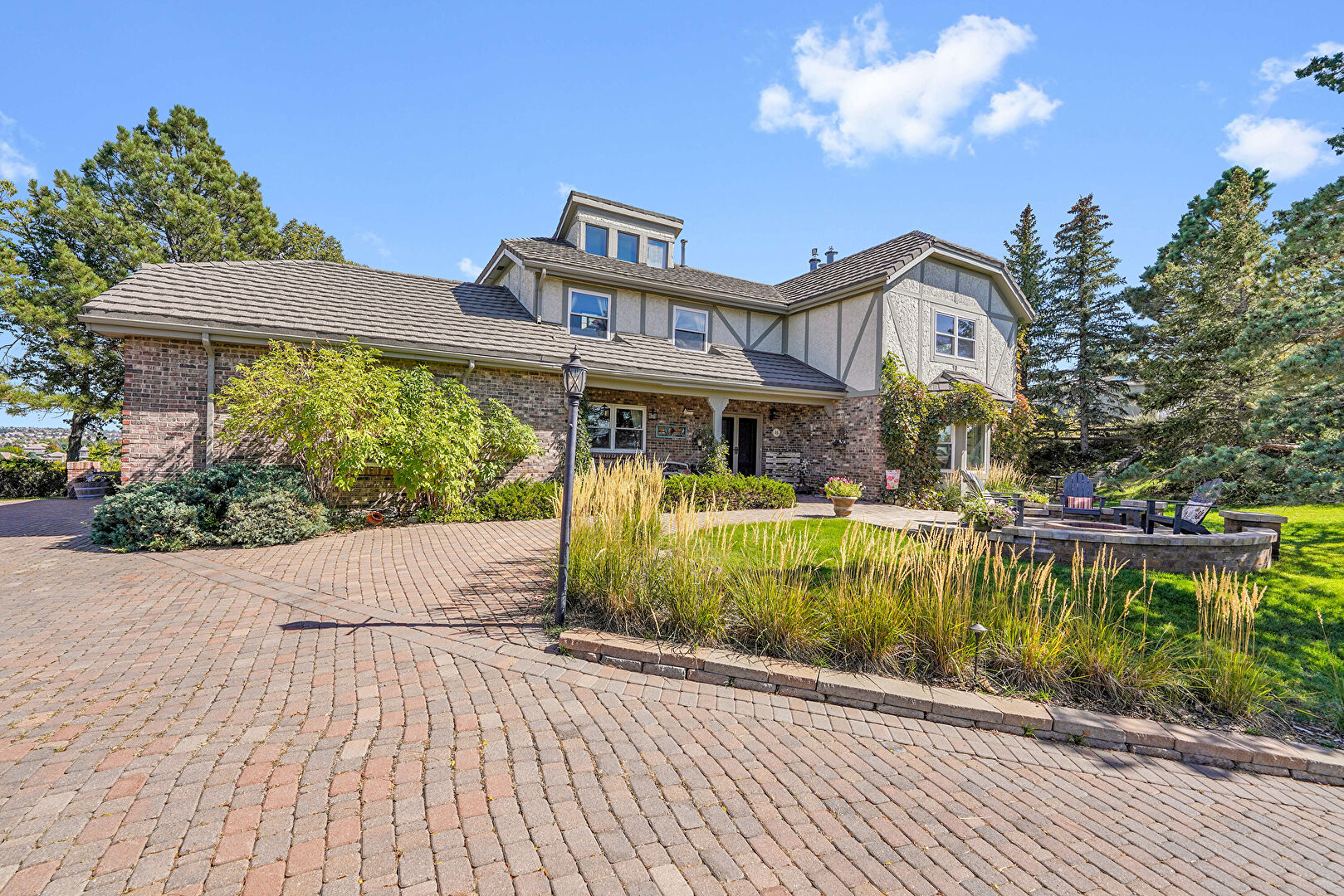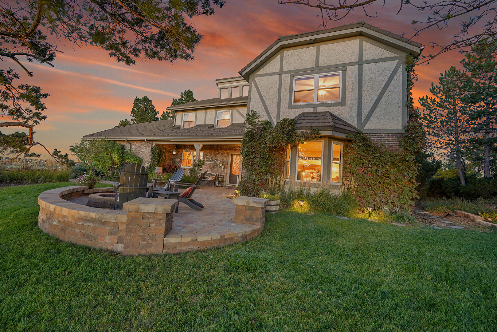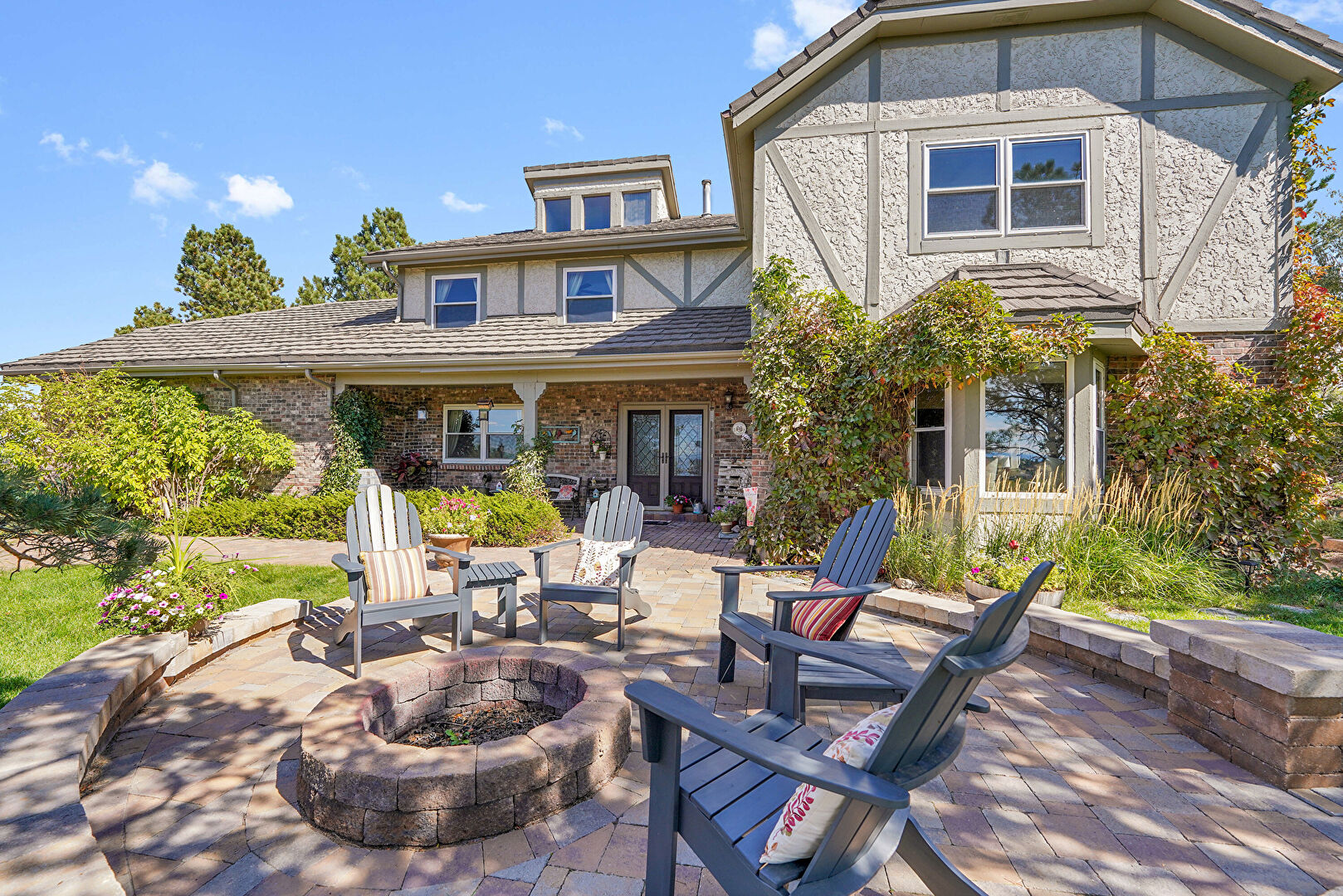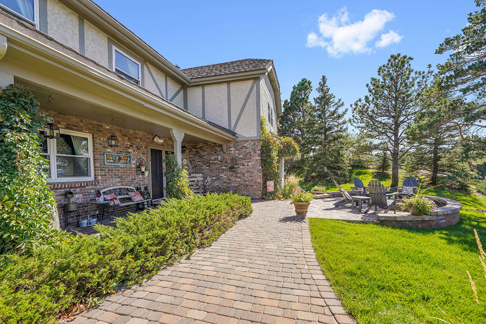 Brick Siding, Downspout, Driveway, Fire Pit, French Doors, Gutters, Lawn, Patio, Porch, Stucco Siding, Brick Siding, Downspout, Driveway, Fence, Lawn, Patio, Stucco Siding, Tile Roof