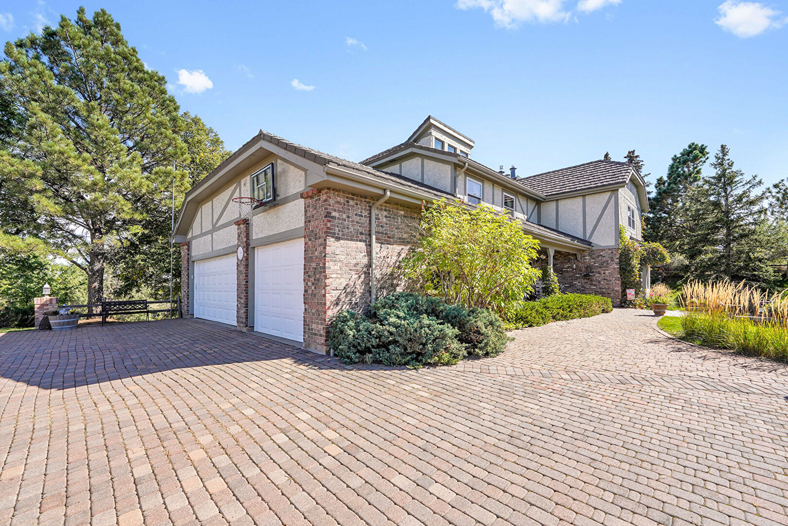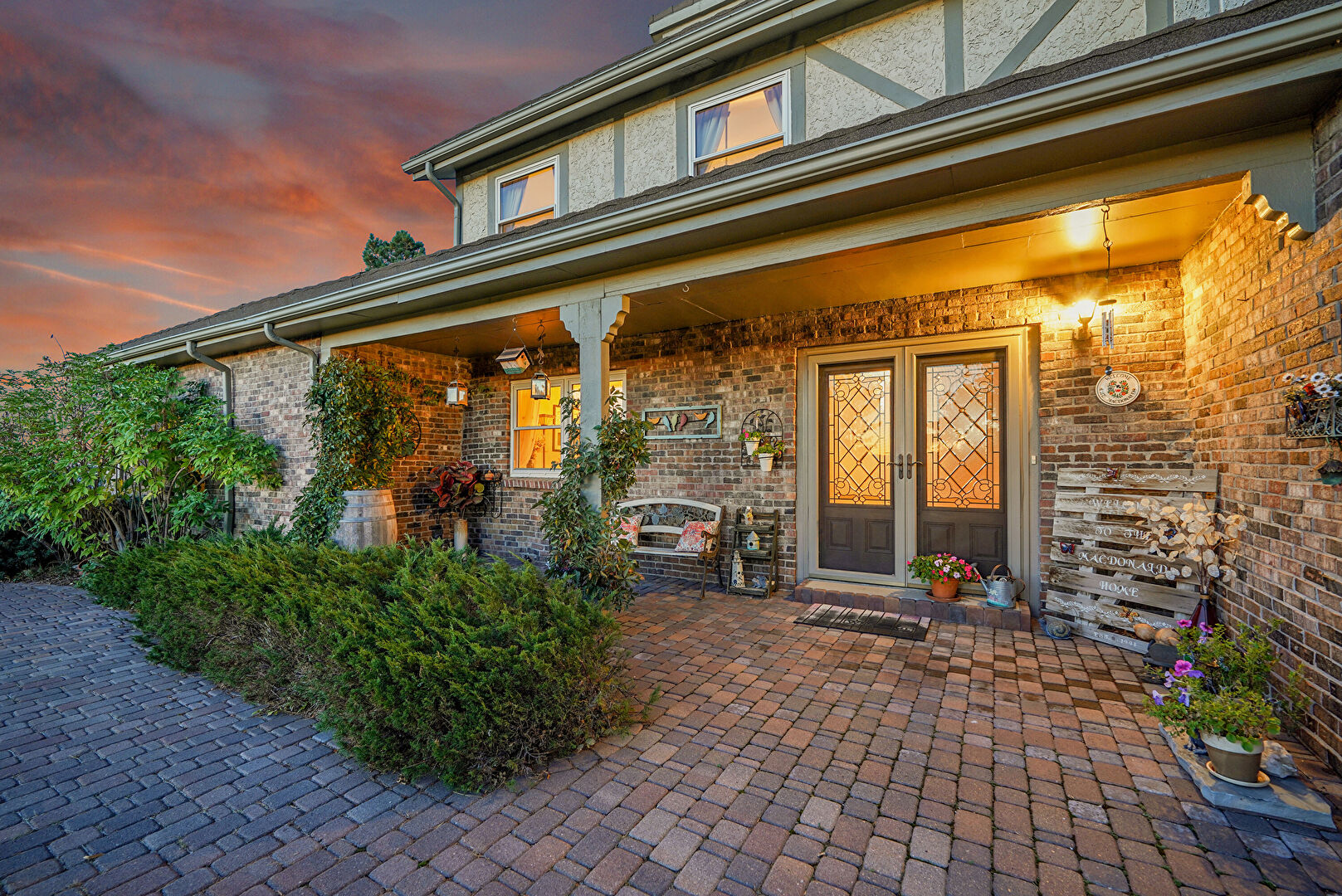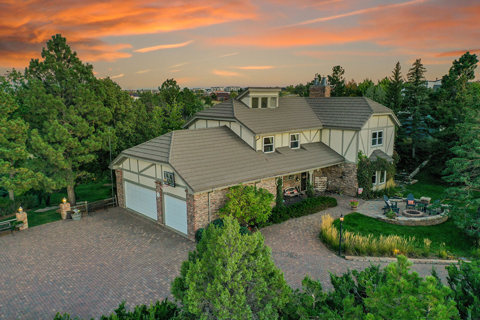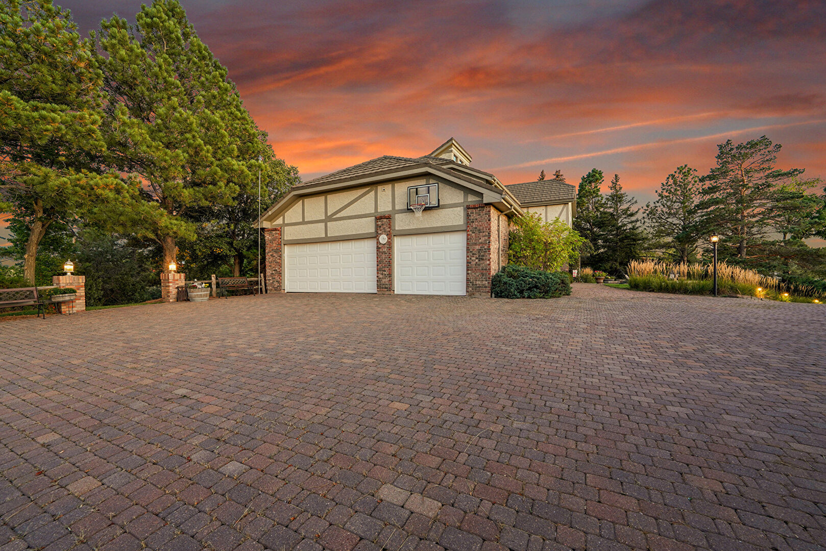 Brick Siding, Downspout, Driveway, Fire Pit, French Doors, Gutters, Lawn, Patio, Porch, Stucco Siding, Brick Siding, Downspout, Driveway, Fence, Lawn, Patio, Stucco Siding, Tile Roof