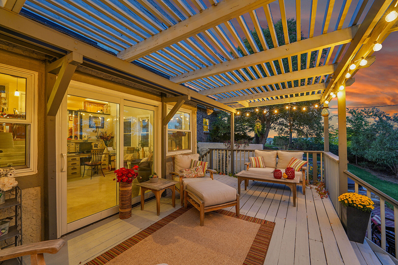 Deck, Electric Meter, Lawn, Outdoor Living Space, Patio, Pergola, Deck, Fence, Patio, Pergola