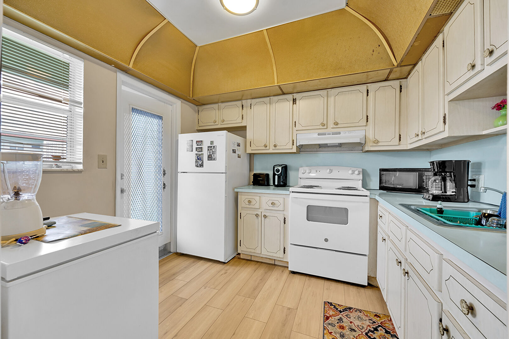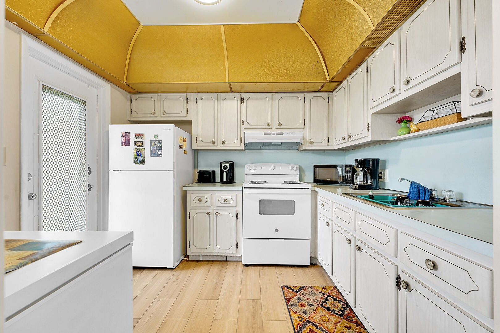 Arched Cabinets, Drywall, Natural Light, Open Shelves, Raised Cabinets, Vaulted Ceiling, Visible Hinge Cabinets, Washer Dryer, Wood Finish Floor, Laundry, Open Shelves, Visible Hinge Cabinets
