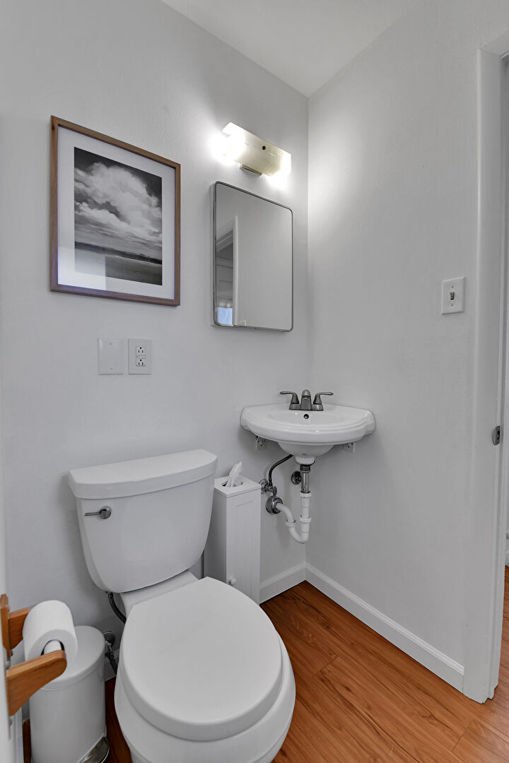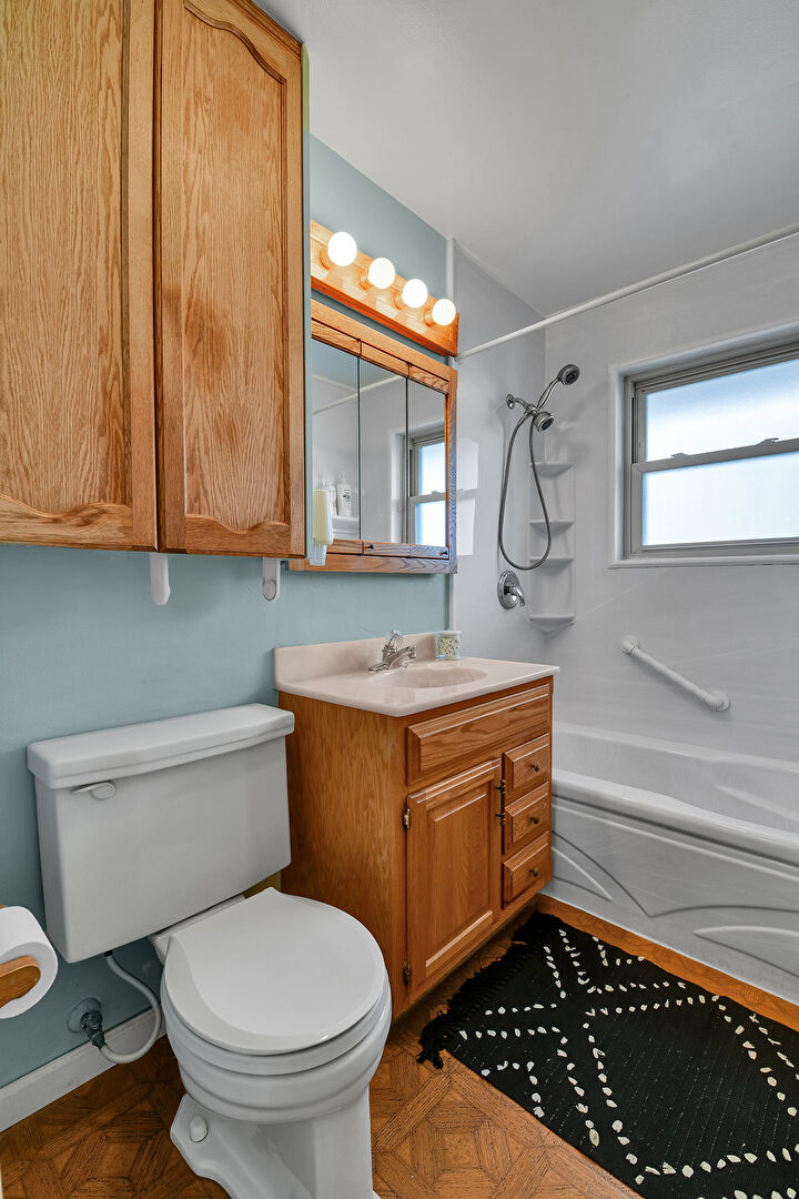 Baseboards Wall, Combined Bath Shower, Drywall, Full Bathroom, Half Bathroom, Natural Light, Vanity, Wood Finish Floor, Full Bathroom, Half Bathroom, Natural Light, Vanity, Wood Finish Floor