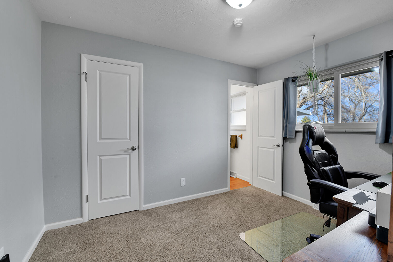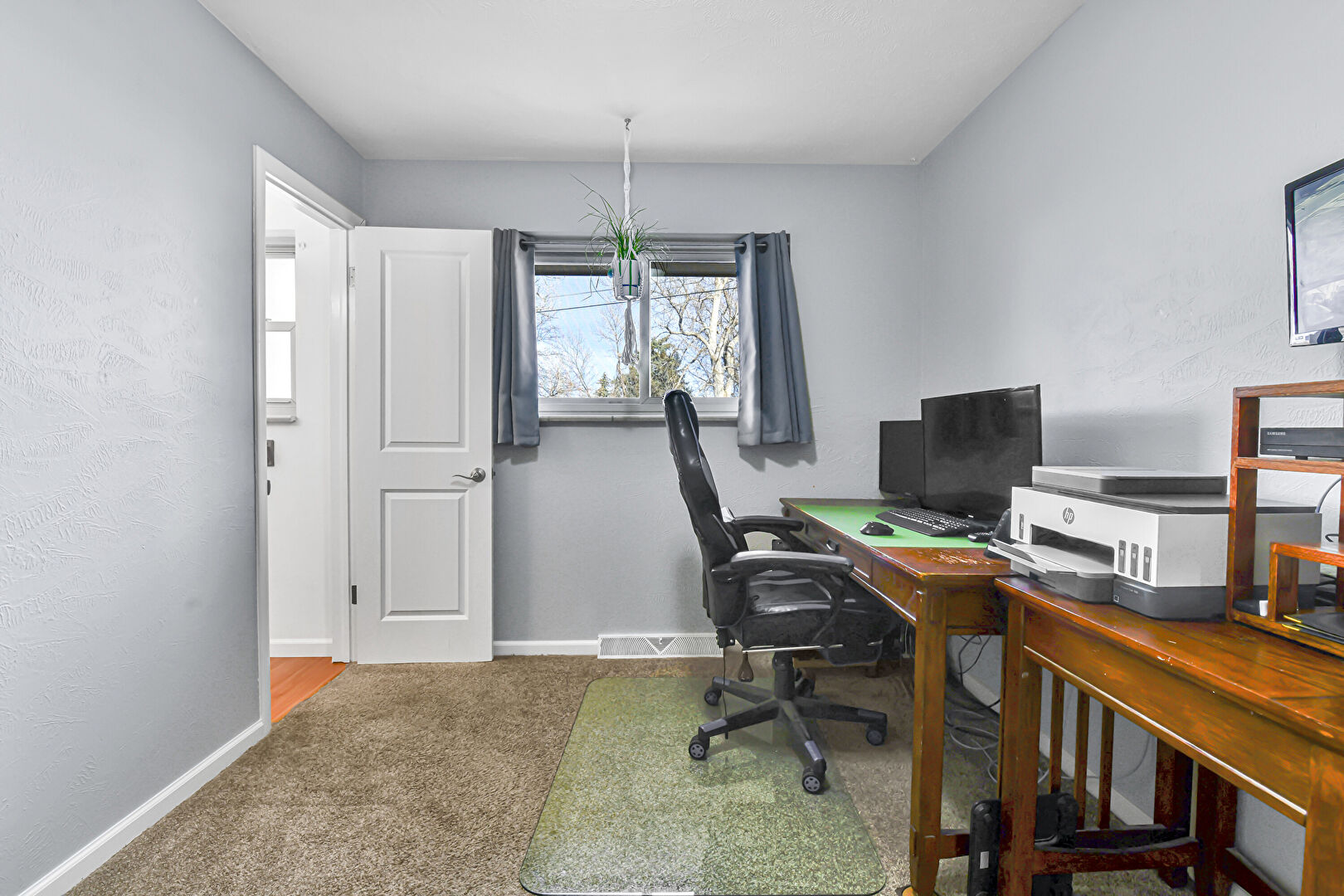 Baseboards Wall, Carpet, Drywall, Natural Light, Office Area, Smoke Carbon Monoxide Detector, Vent, Baseboards Wall, Carpet, Drywall