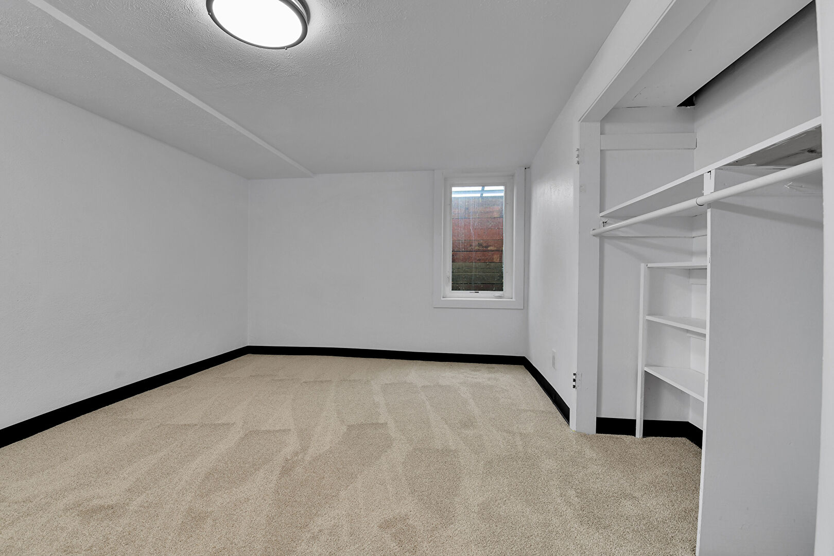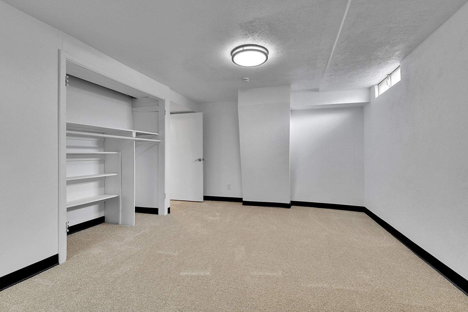 Baseboards Wall, Basement, Carpet, Closet, Drywall, Natural Light, Carpet, Textured Ceiling