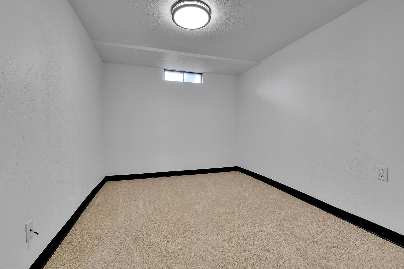 Baseboards Wall, Basement, Carpet, Drywall, Natural Light, Office Area, Smoke Carbon Monoxide Detector, Textured Ceiling, Textured Wall, Baseboards Wall, Carpet