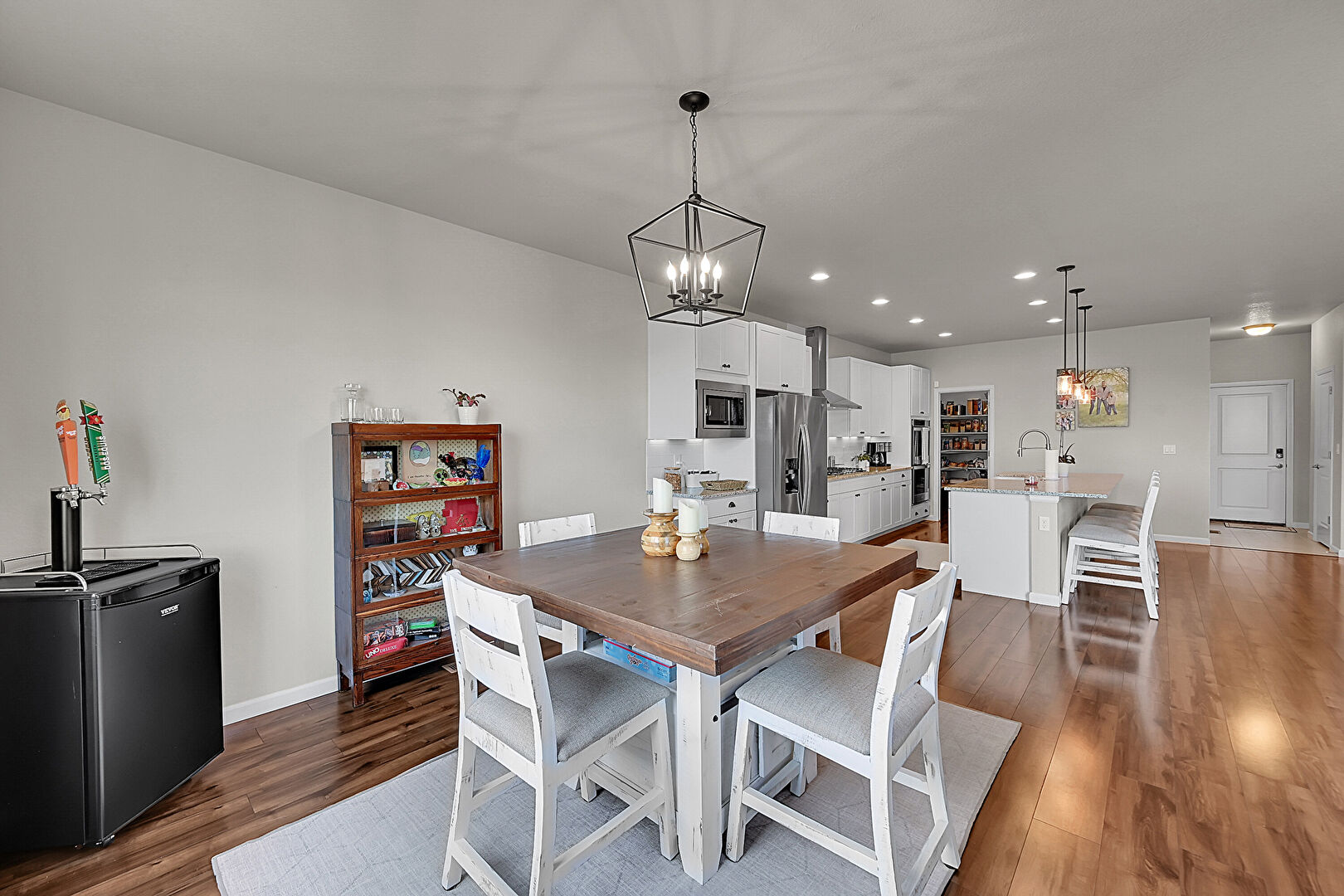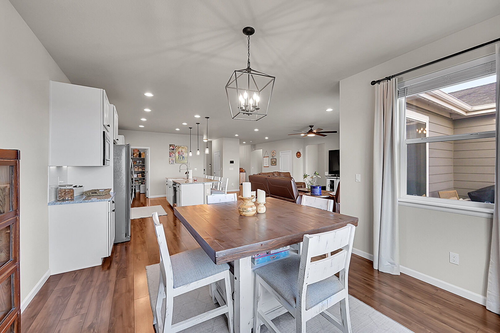 Baseboards Wall, Ceiling Fan, Double Oven, Drywall, Natural Light, Notable Chandelier, One Wall Kitchen, Recessed Lighting, Wood Finish Floor, One Wall Kitchen, Wood Finish Floor