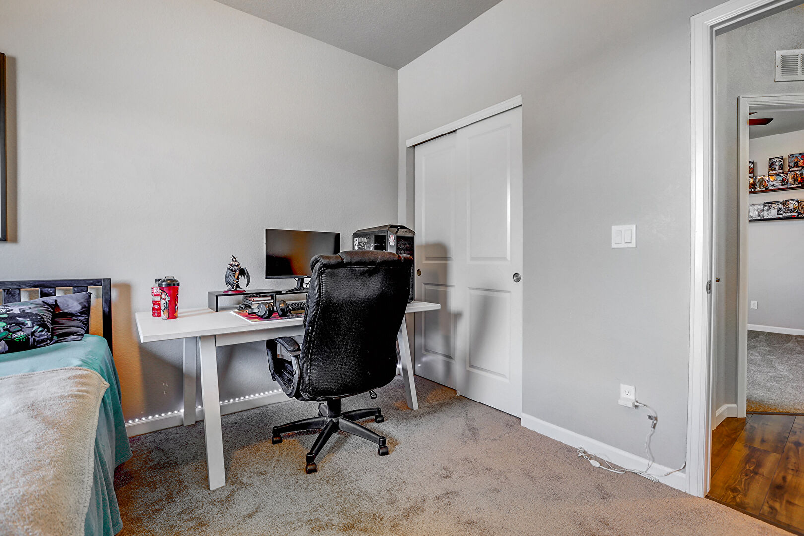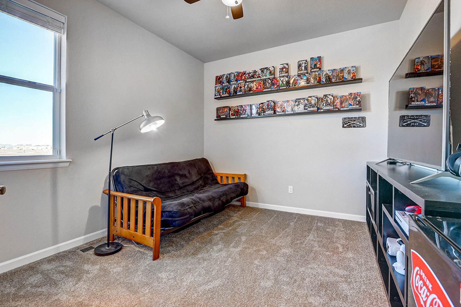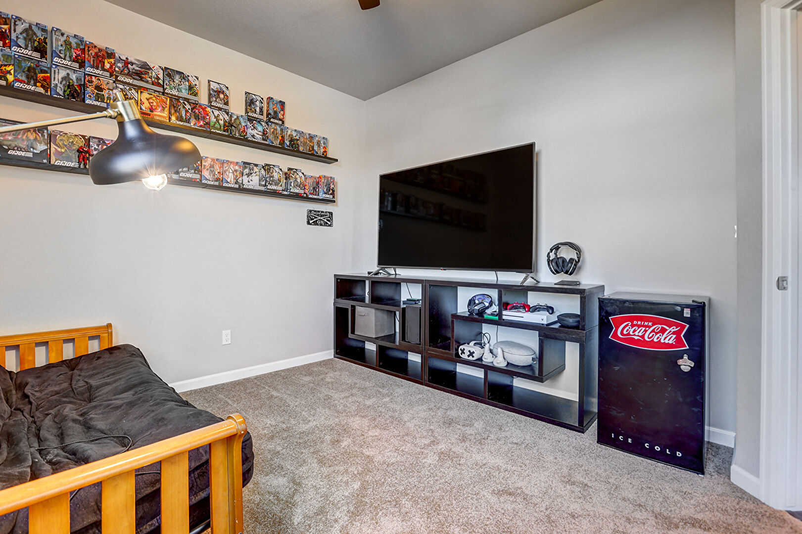 Baseboards Wall, Carpet, Ceiling Fan, Drywall, Ensuite Bathroom, Natural Light, Textured Ceiling, Textured Wall, Ceiling Fan, Vent