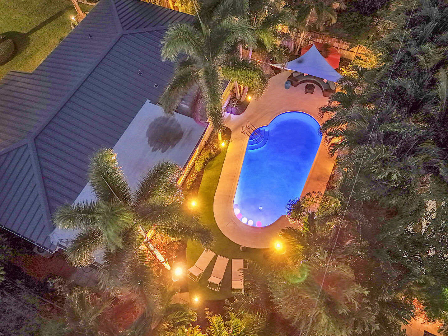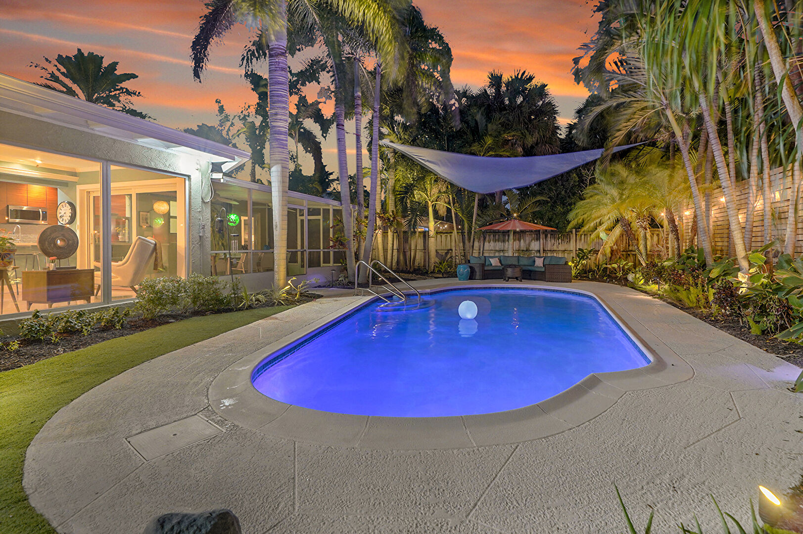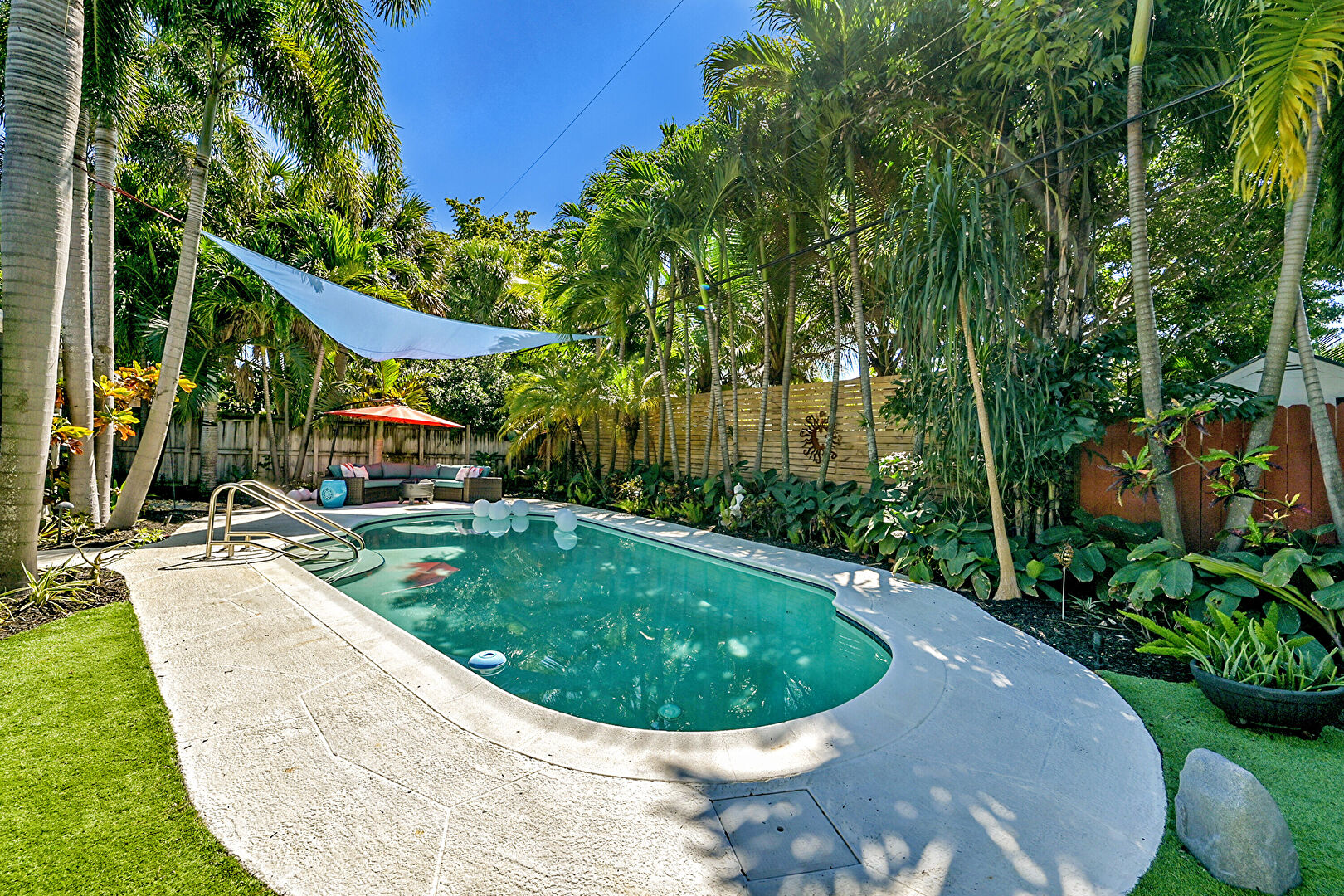 Aggregate Floor, Ceiling Fan, Downspout, Drywall, Fence, Handrail, Lawn, Natural Light, Outdoor Living Space, Patio, Pool, Stucco Siding, Vent, Wall Mounted Ac, Baseboards Wall, Sunroom, Vent