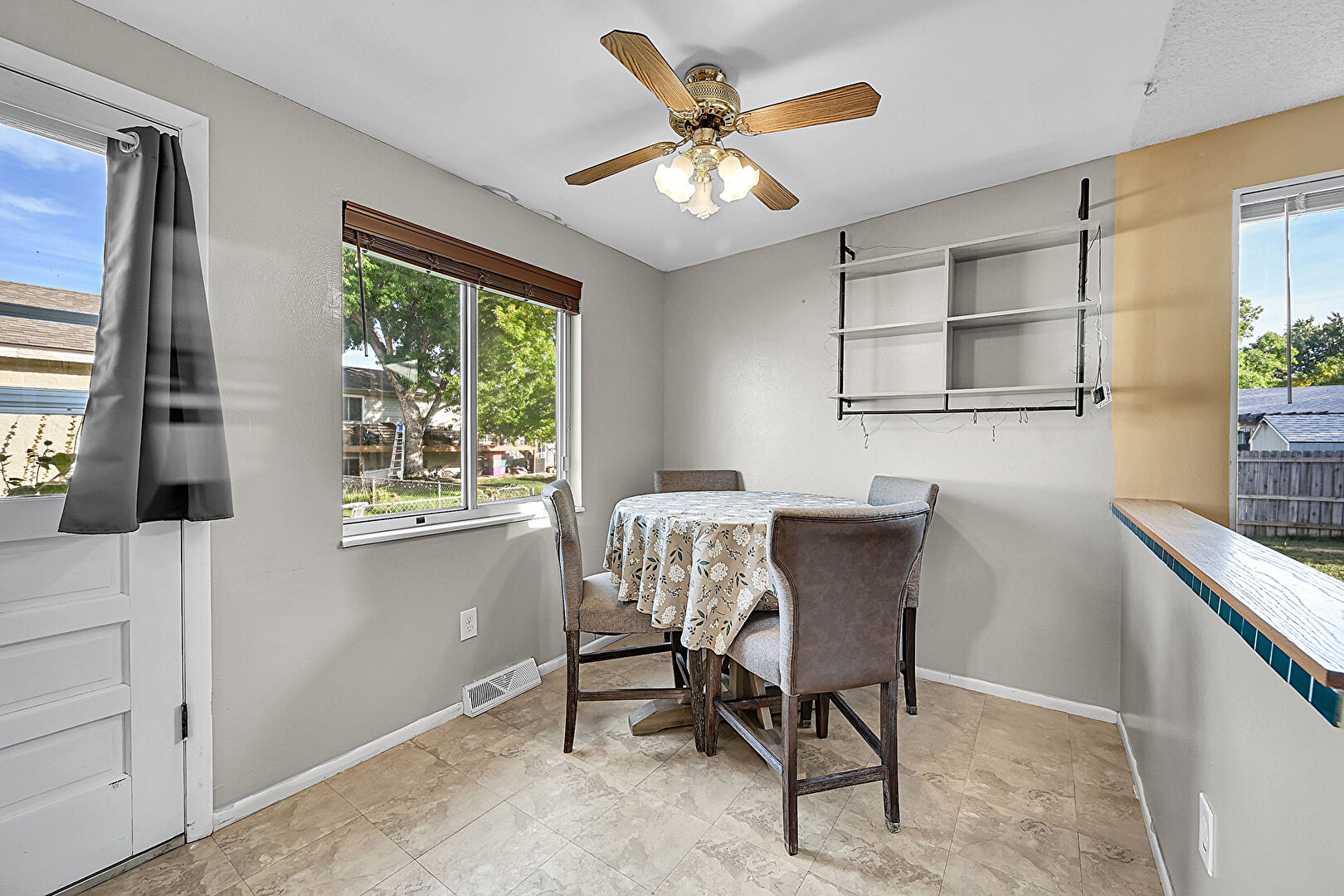 Baseboards Wall, Ceiling Fan, Drywall, Natural Light, U Shaped Kitchen, Vent, Baseboards Wall, Ceiling Fan