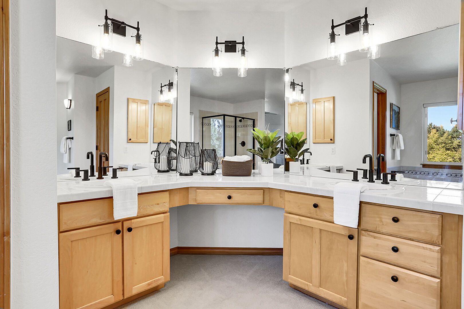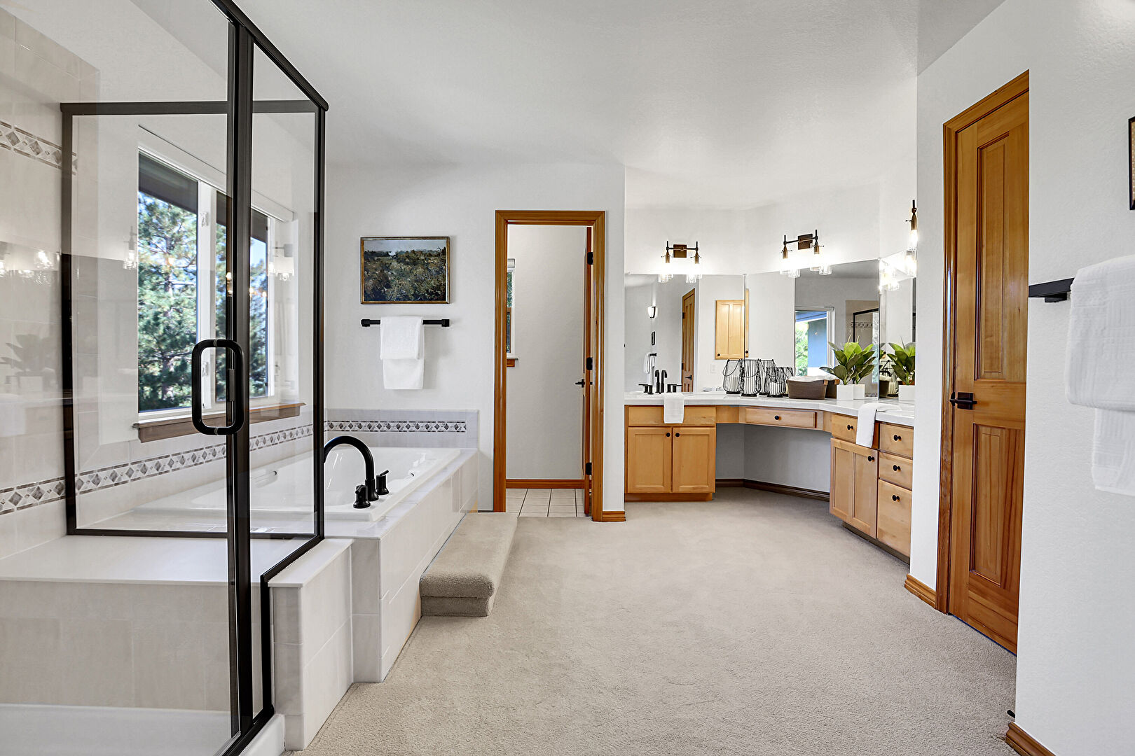 Baseboards Wall, Carpet, Double Vanity, Drywall, Full Bathroom, Natural Light, Vanity, Vent, Carpet, Full Bathroom