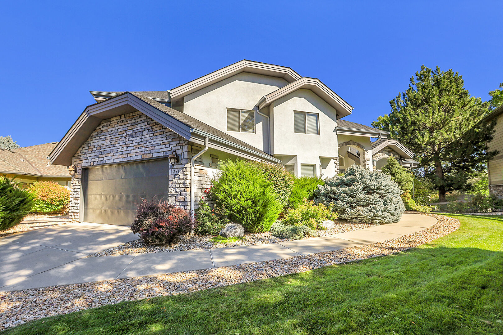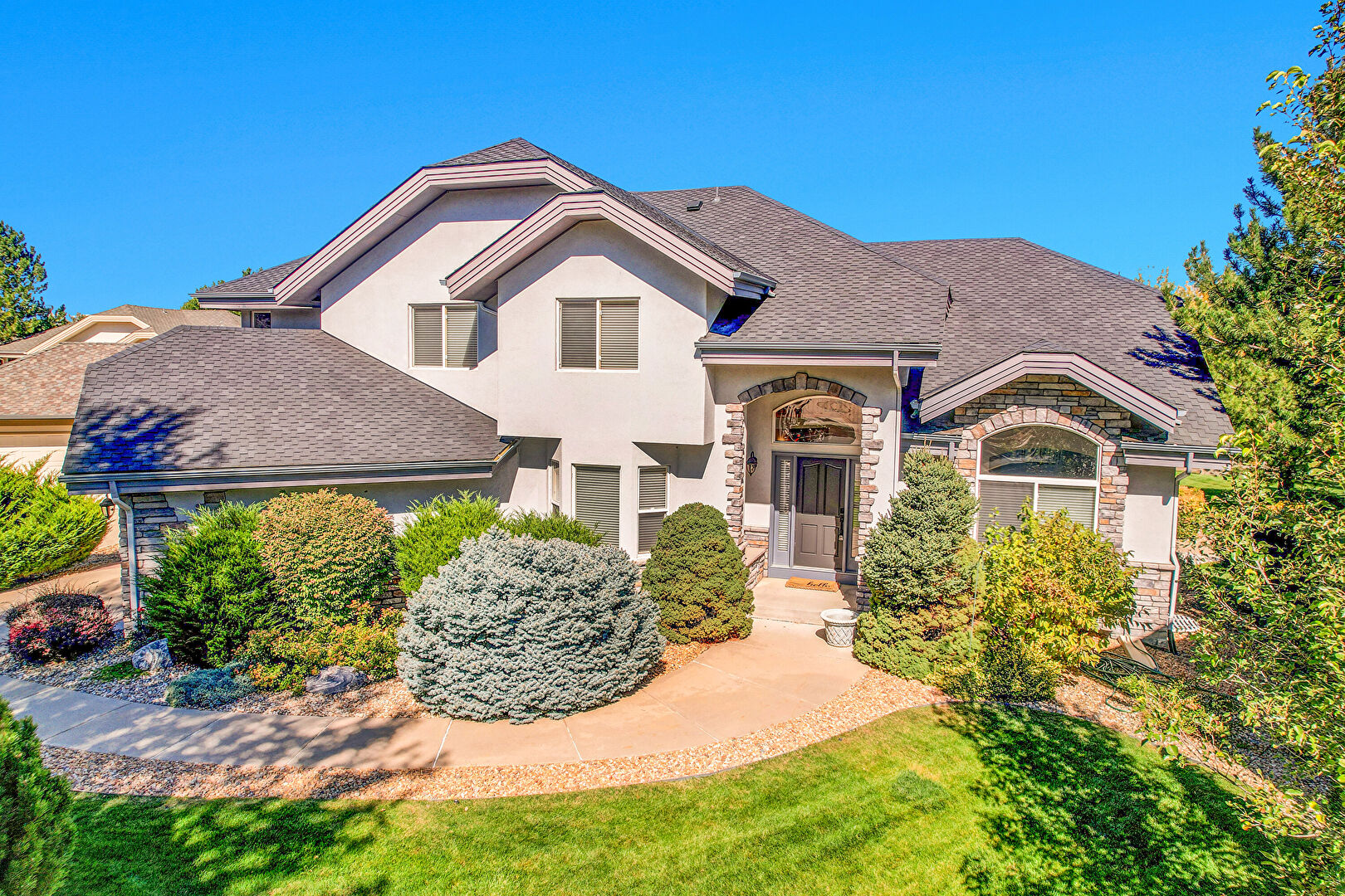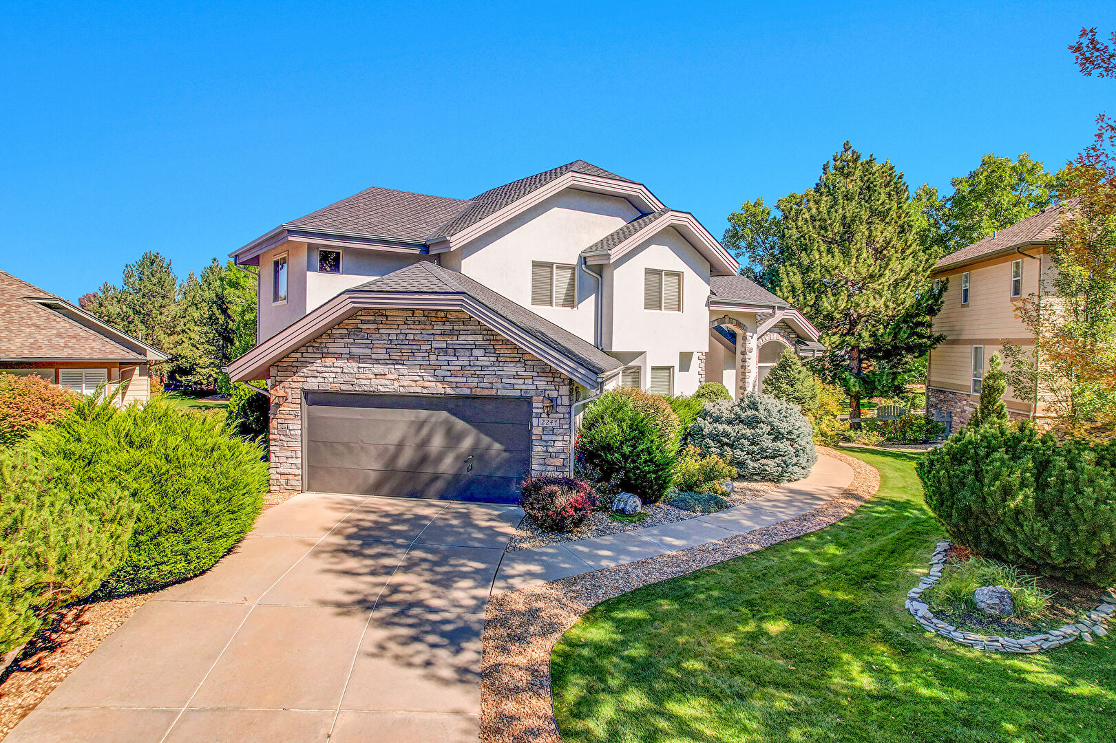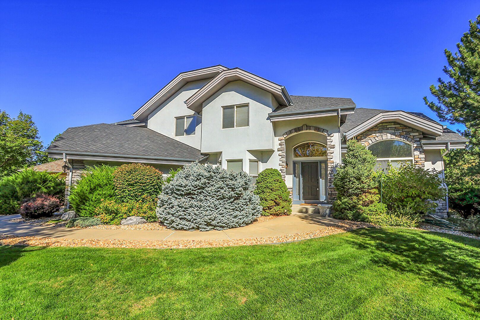 Balcony, Central Ac, Downspout, Driveway, Gutters, Lawn, Shingle Roof, Stone Siding, Stucco Siding, Gutters, Shingle Roof, Stone Siding, Stucco Siding