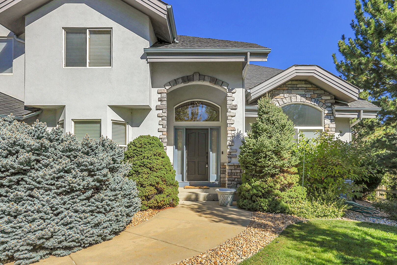 Downspout, Gutters, Shingle Roof, Stone Siding, Stoop, Stucco Siding, Lawn