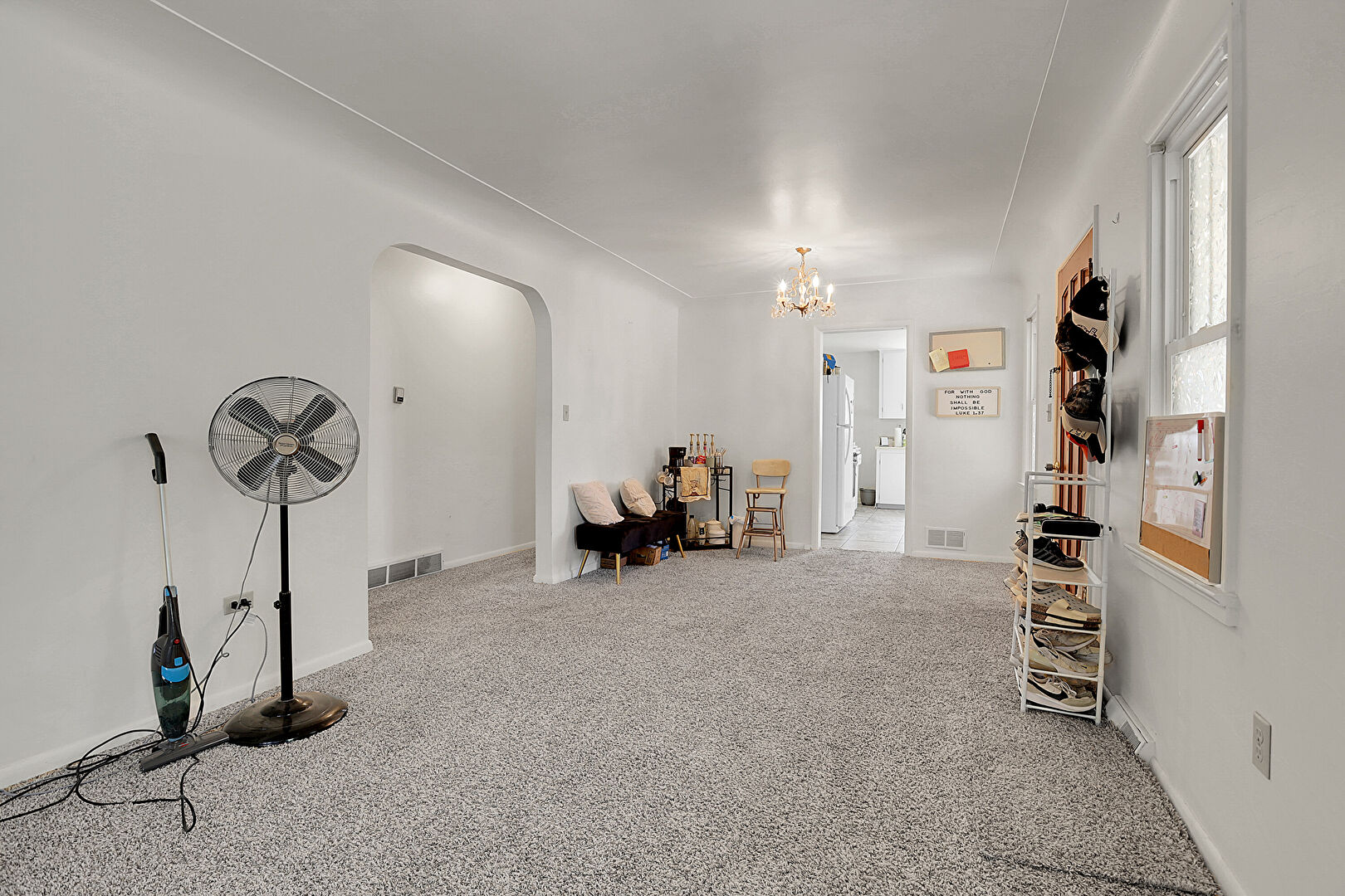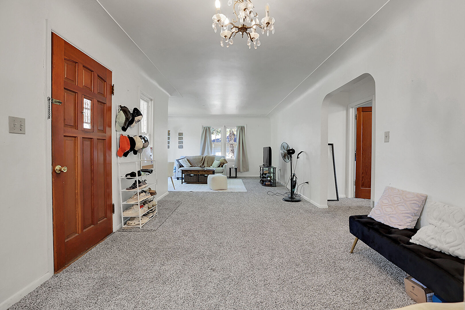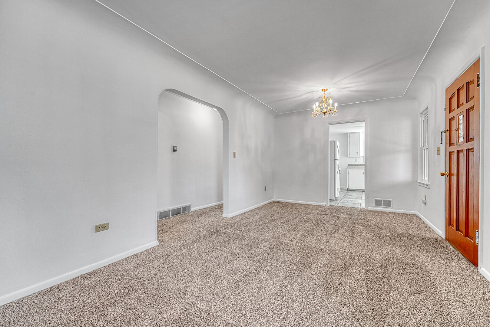 Arched Walkways, Baseboards Wall, Carpet, Drywall, Natural Light, Notable Chandelier, Vent, Arched Walkways, Baseboards Wall, Carpet, Notable Chandelier, Vent