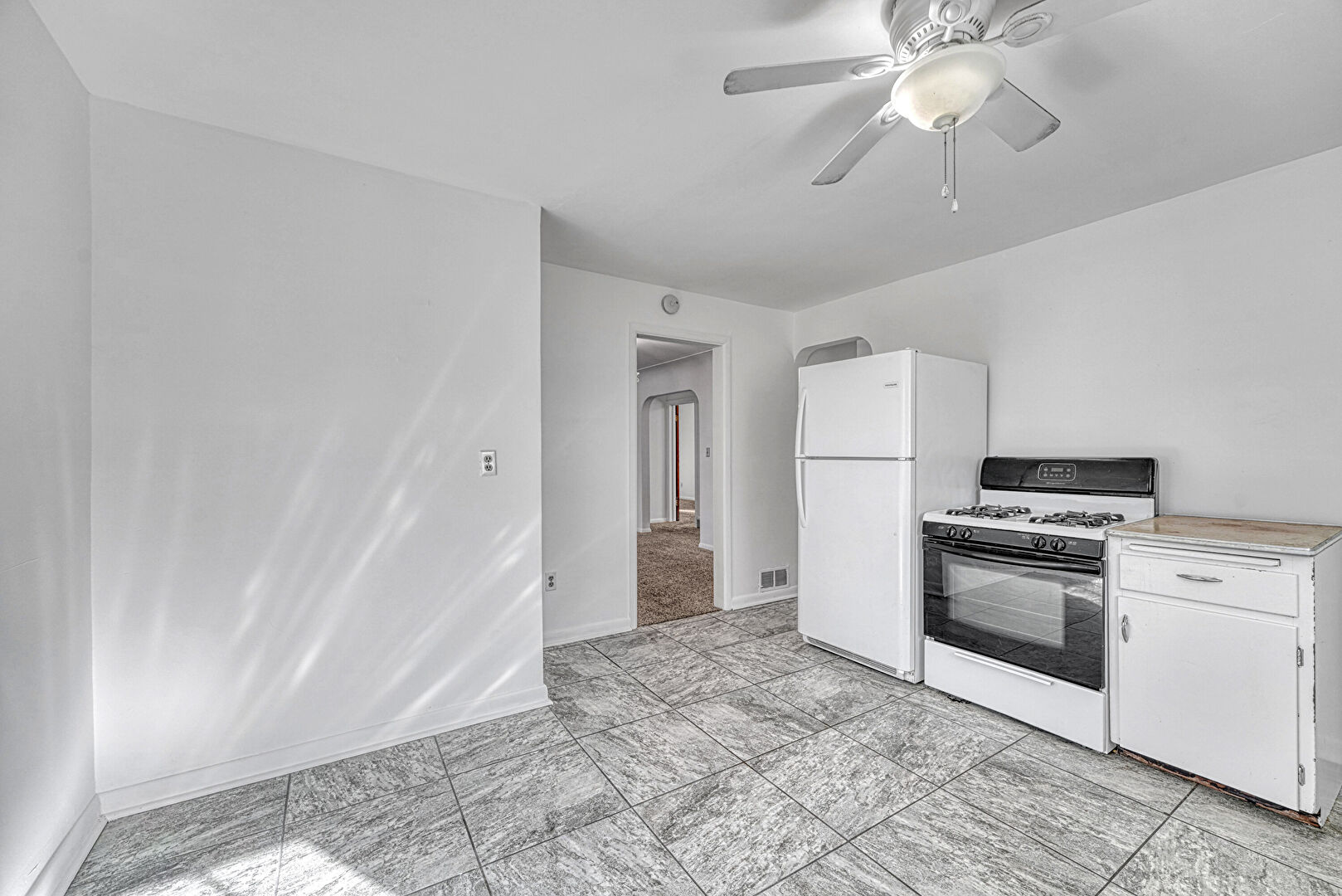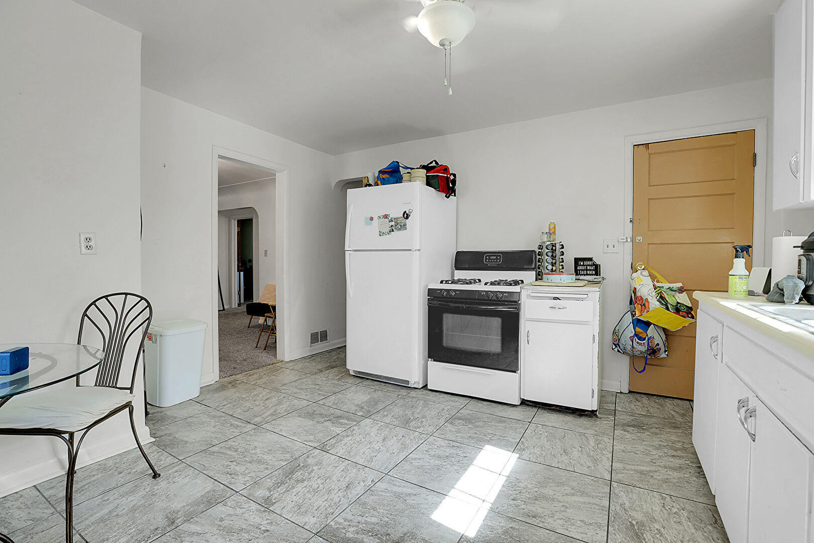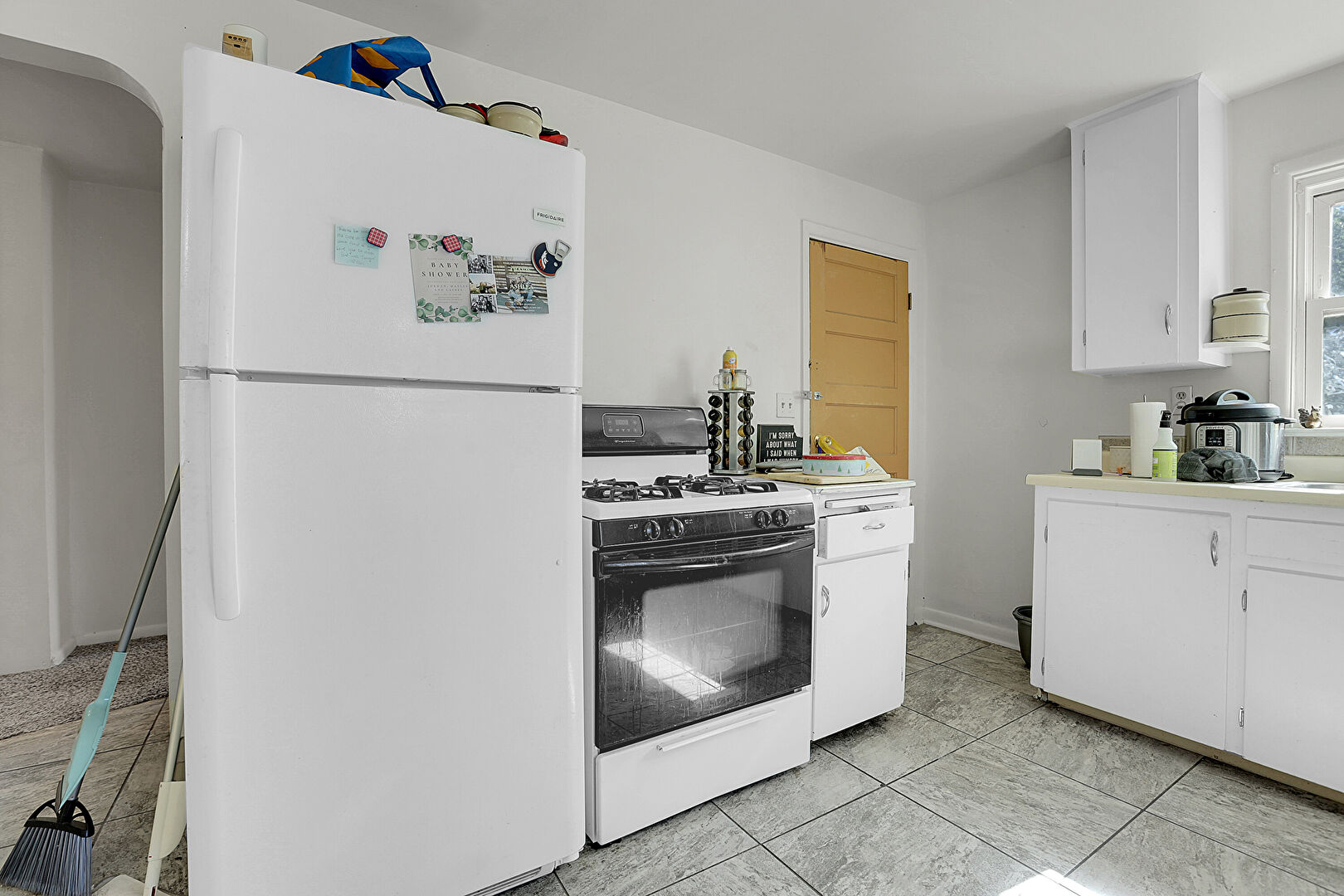 Arched Cabinets, Arched Walkways, Baseboards Wall, Ceiling Fan, Drywall, Medium Brown Cabinets, Natural Light, Recessed Lighting, Tile Floor, Toaster, Vent, Visible Hinge Cabinets, Arched Cabinets, Drywall, Natural Light, Tile Floor, Visible Hinge Cabinets