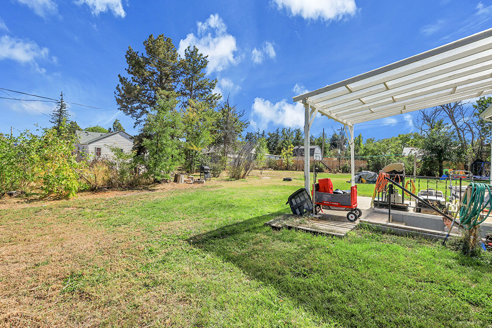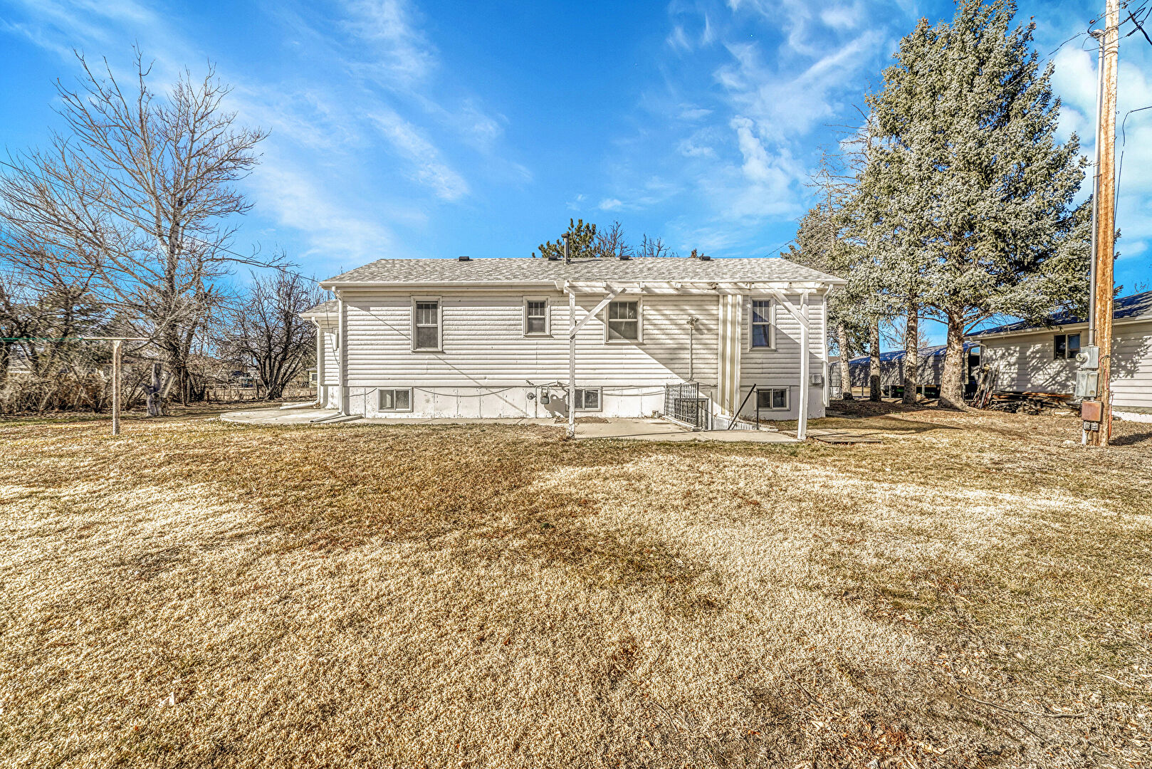 Concrete Foundation, Downspout, Electric Meter, Grill, Horizontal Siding, Lawn, Patio, Pergola, Shingle Roof, Gutters, Pergola