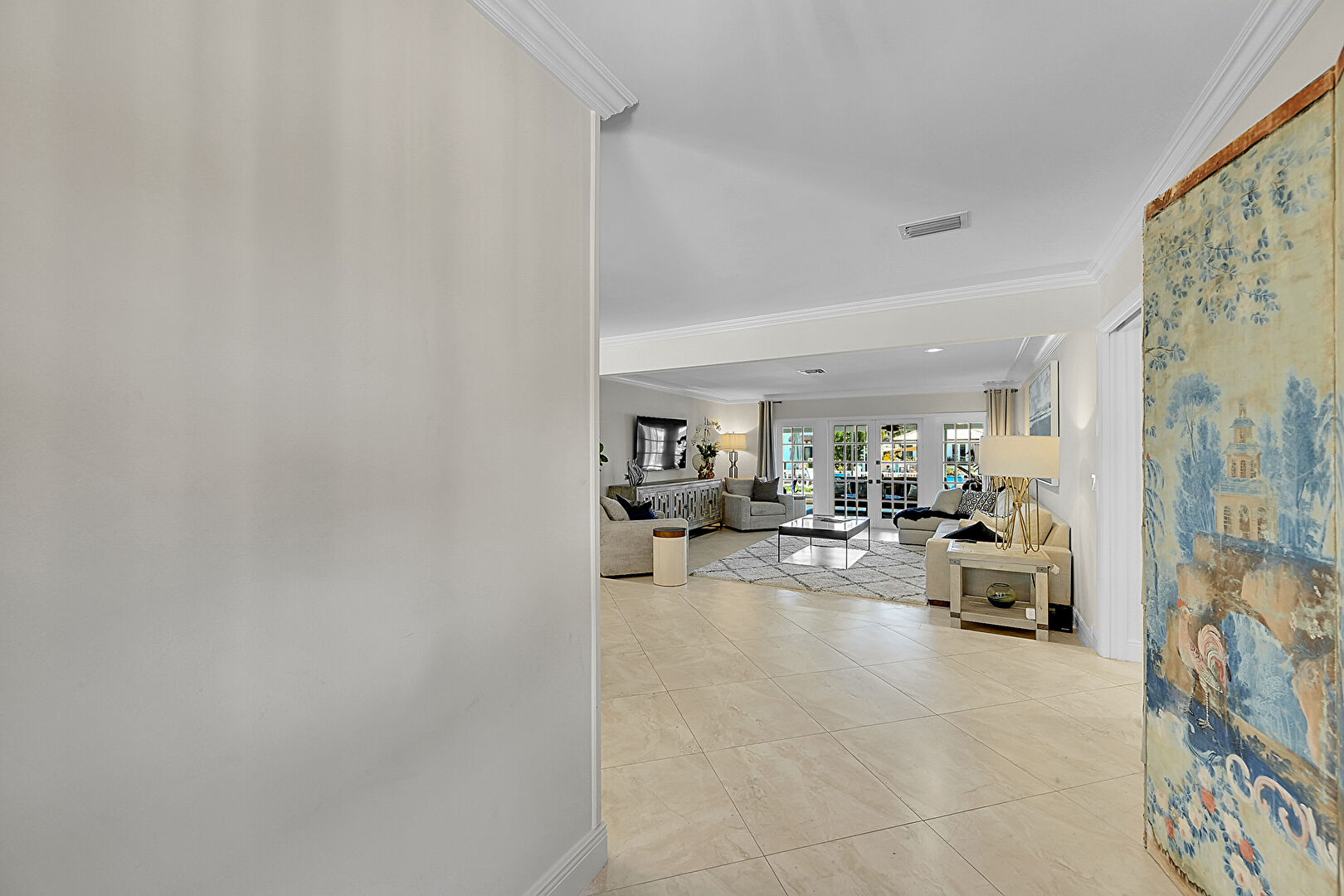 Baseboards Wall, Crown Molding, Decorative Columns, Drywall, French Doors, Natural Light, Recessed Lighting, Tile Floor, Vent, Drywall, Natural Light, Vent