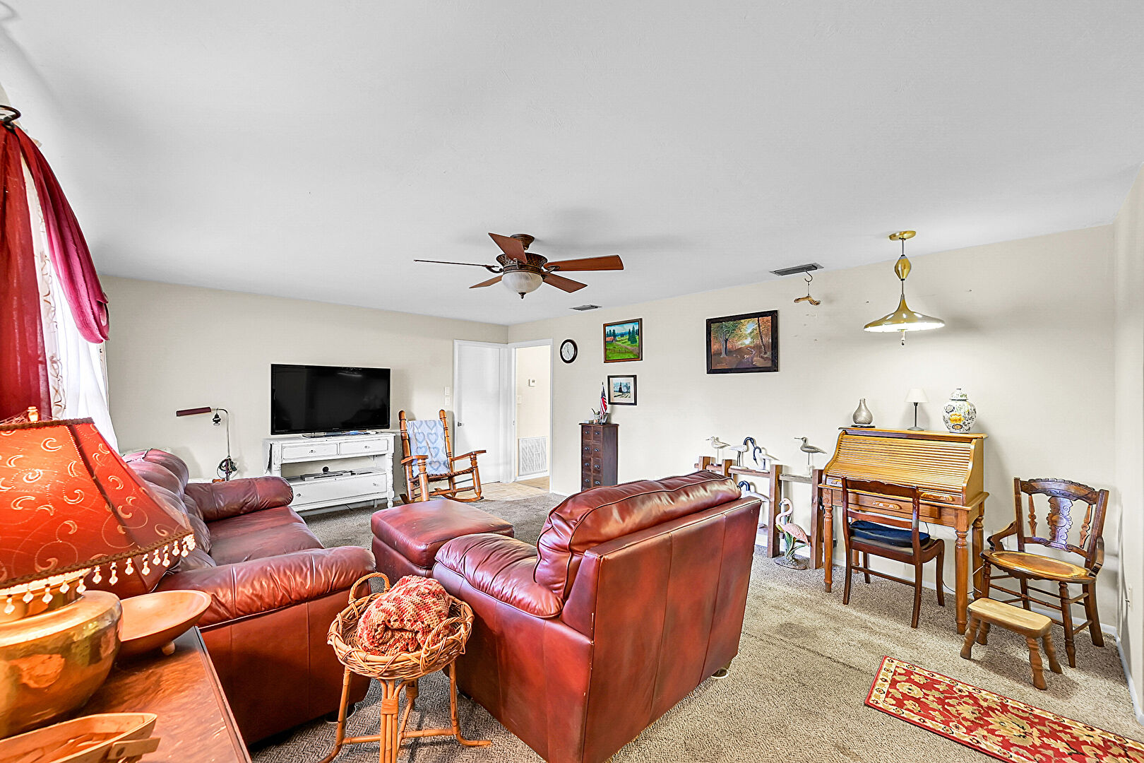 Carpet, Ceiling Fan, Drywall, Vent, Carpet, Natural Light