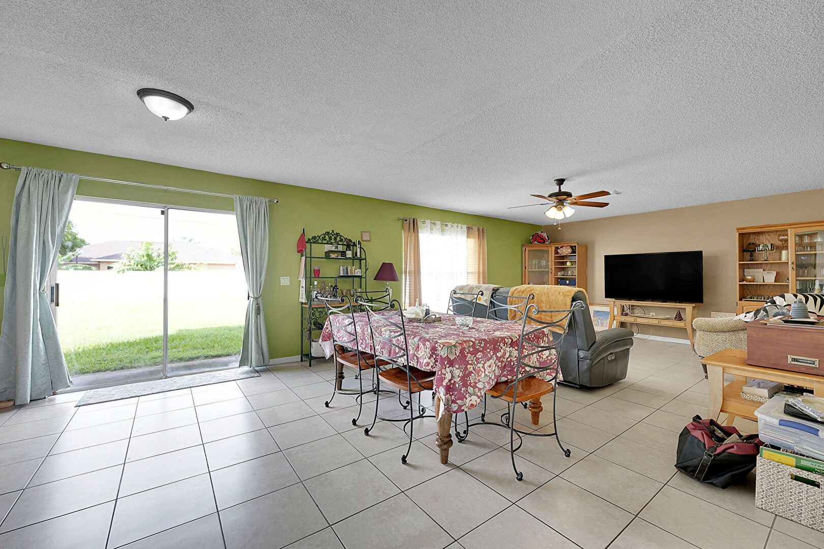 Baseboards Wall, Ceiling Fan, Drywall, Natural Light, Textured Ceiling, Tile Floor, Ceiling Fan, Tile Floor