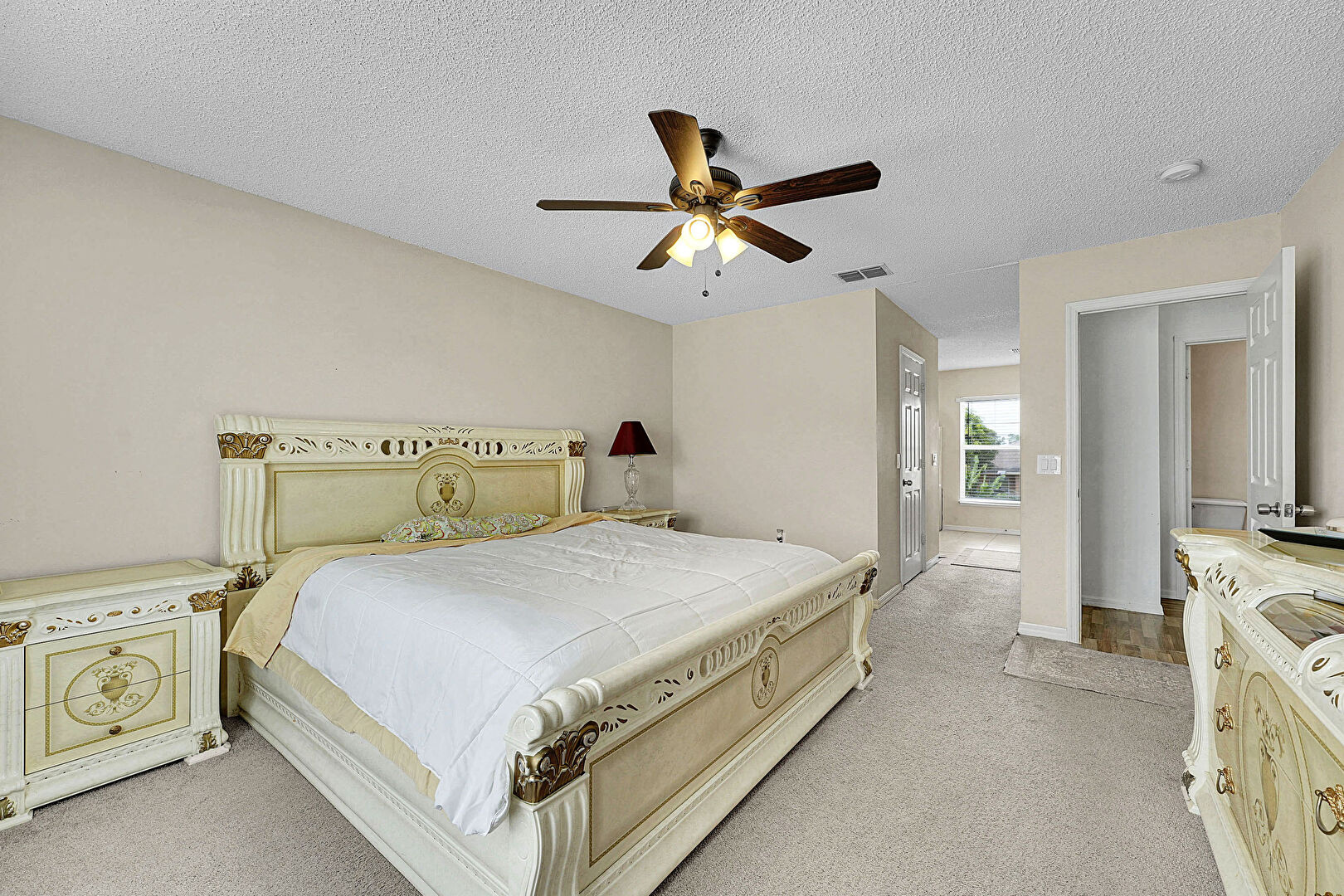 Baseboards Wall, Carpet, Ceiling Fan, Drywall, Ensuite Bathroom, Natural Light, Smoke Carbon Monoxide Detector, Textured Ceiling, Carpet, Drywall, Vent