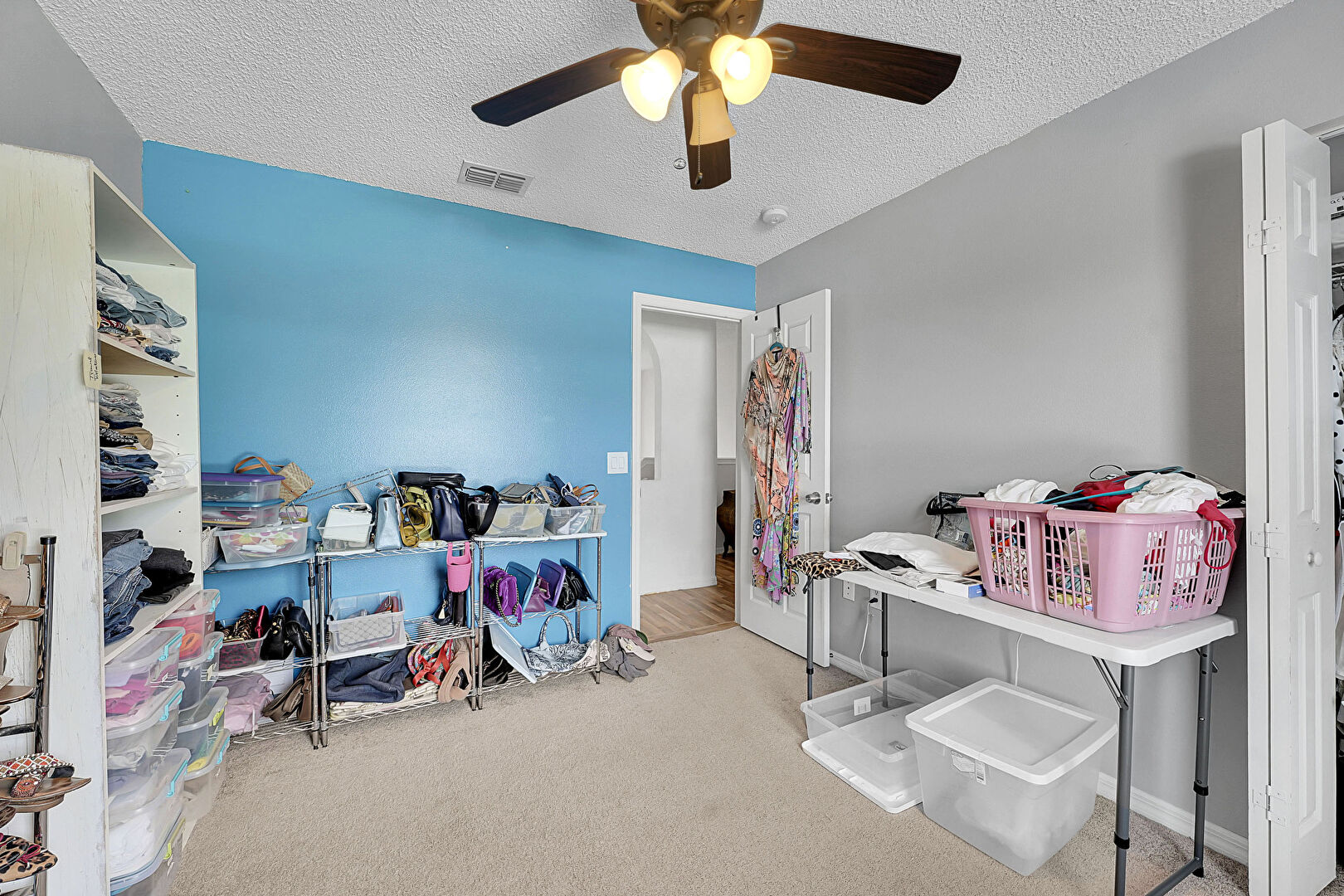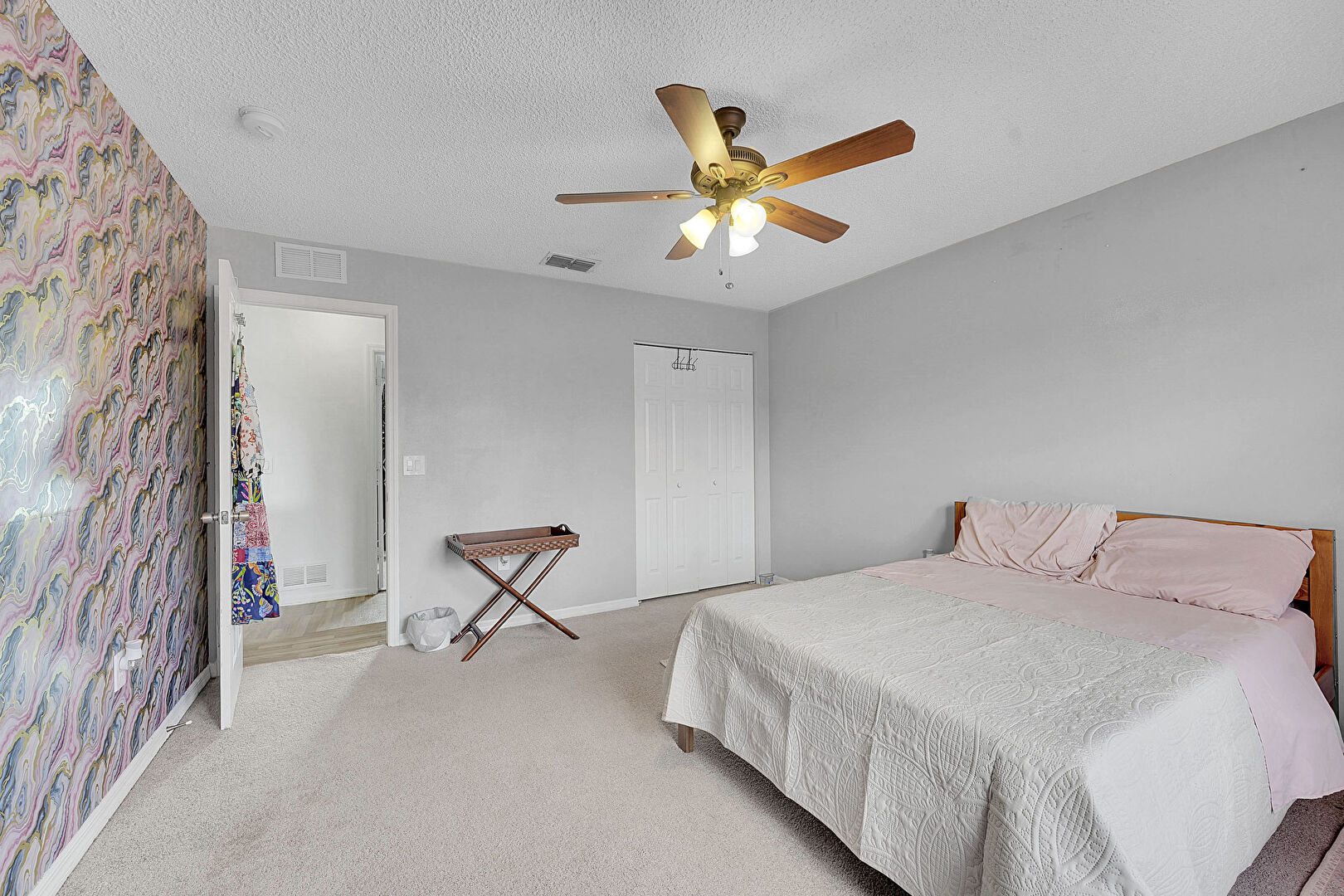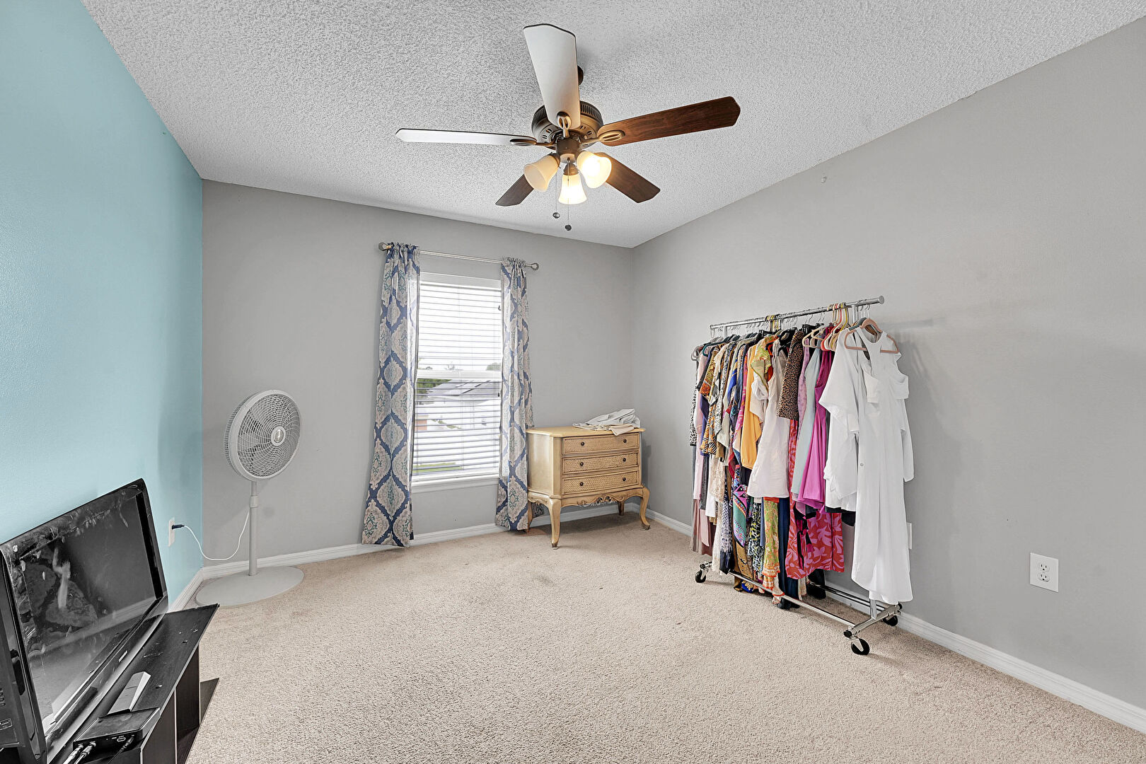 Baseboards Wall, Carpet, Ceiling Fan, Closet, Drywall, Natural Light, Smoke Carbon Monoxide Detector, Textured Ceiling, Vent, Ceiling Fan, Smoke Carbon Monoxide Detector, Vent