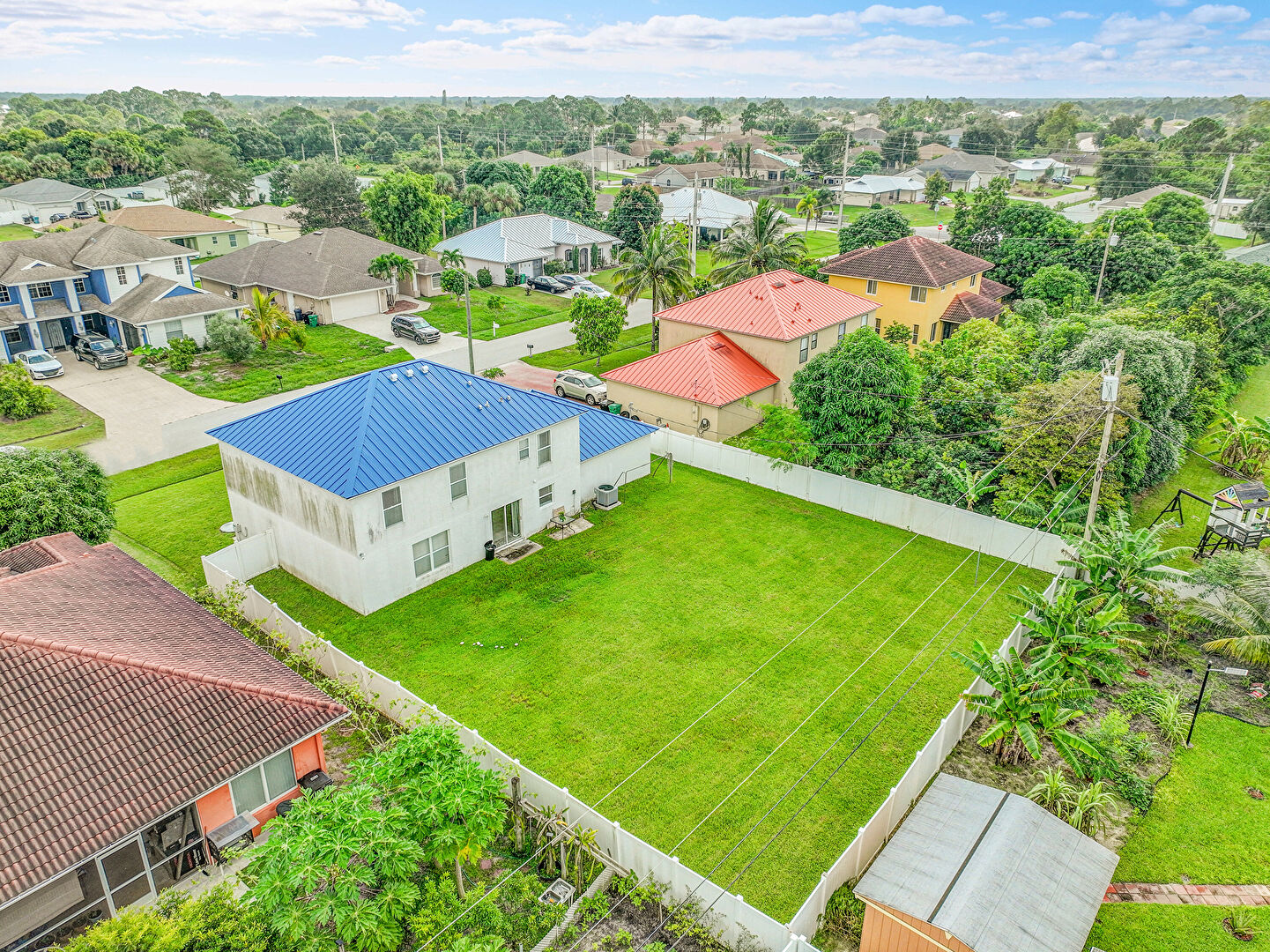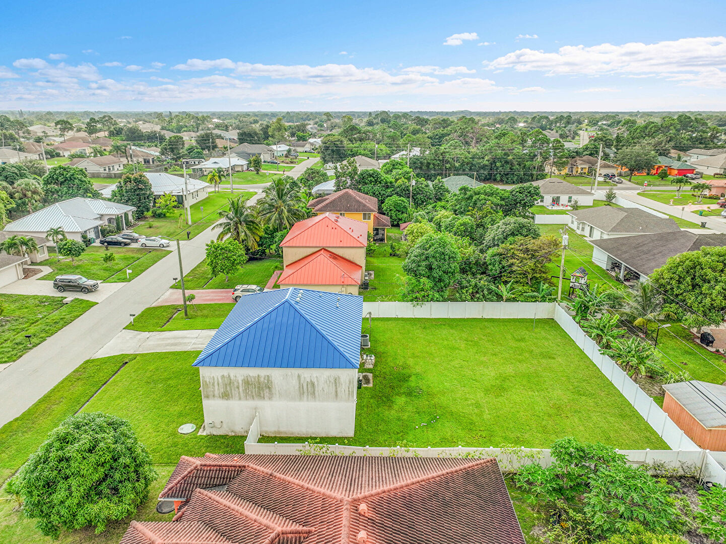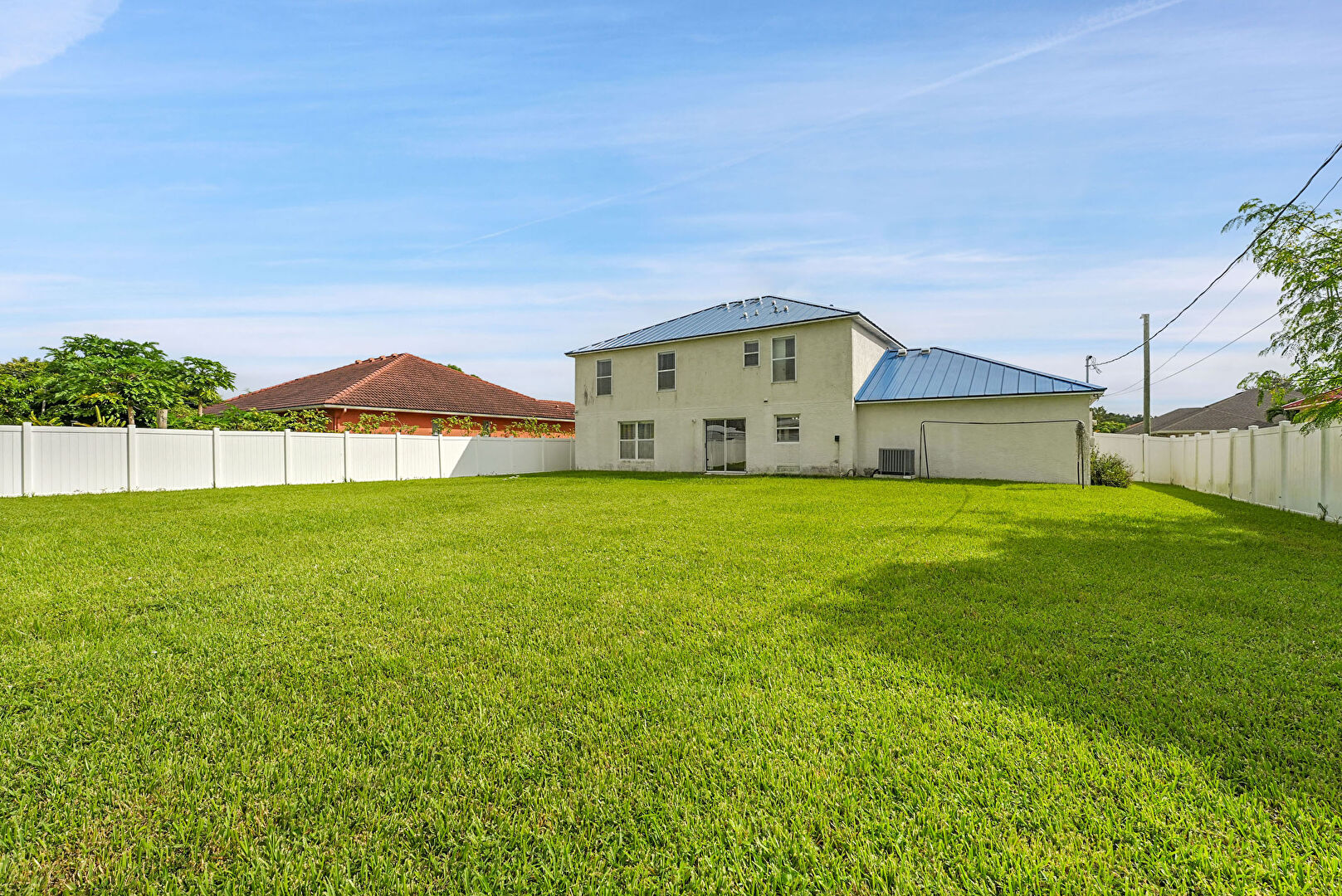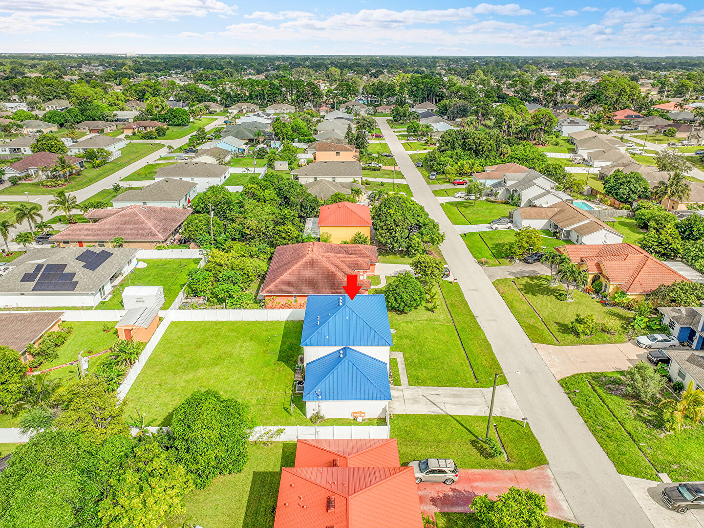 Driveway, Fence, Garage, Gate, Lawn, Metal Roof, Standing Seam Roof, Stucco Siding, Driveway, Metal Roof, Standing Seam Roof, Stucco Siding