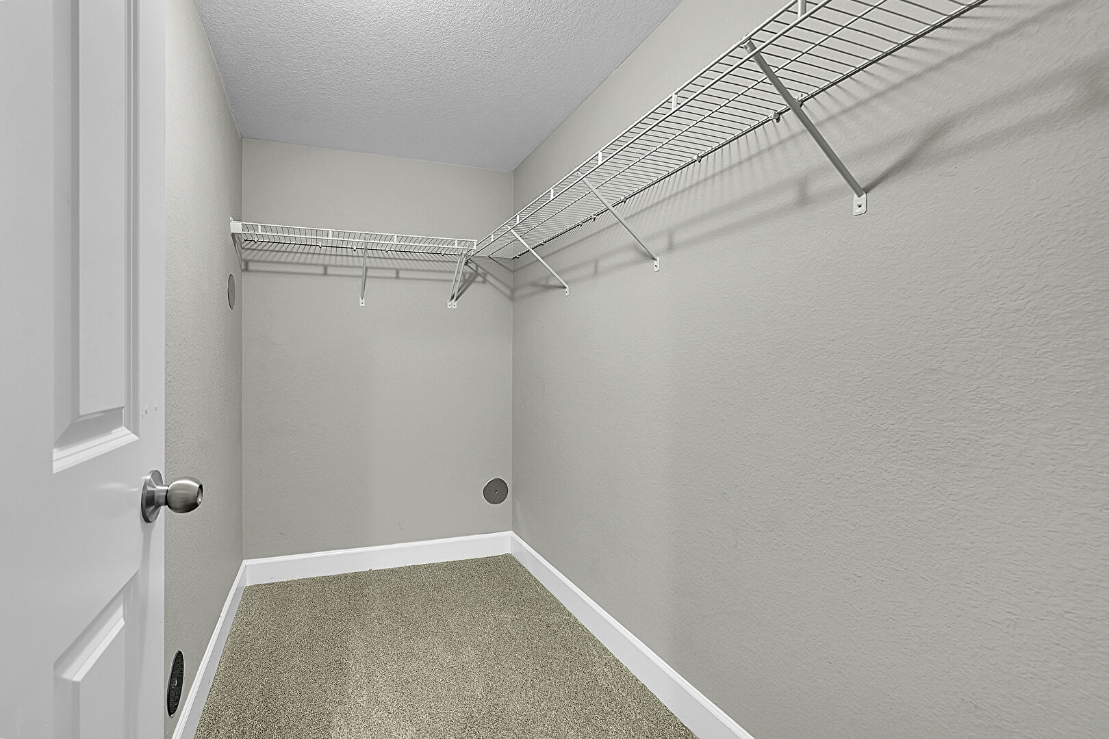 Double Vanity, Drywall, Full Bathroom, Natural Light, Textured Wall, Tile Floor, Vanity, Vent, Walk In Closet, Baseboards Wall