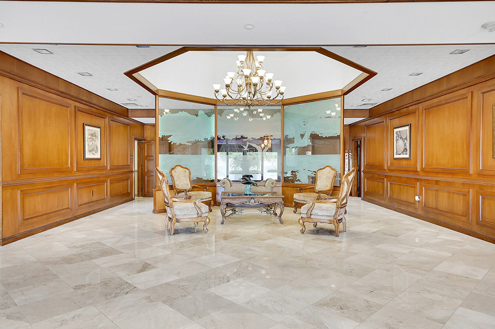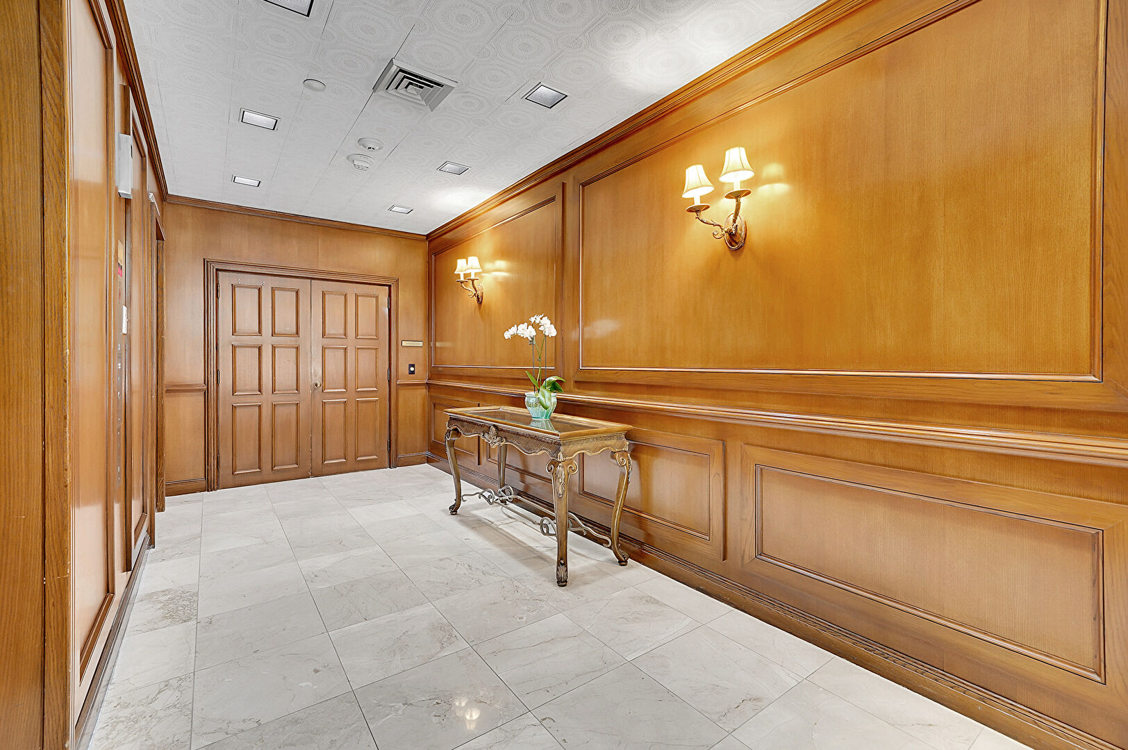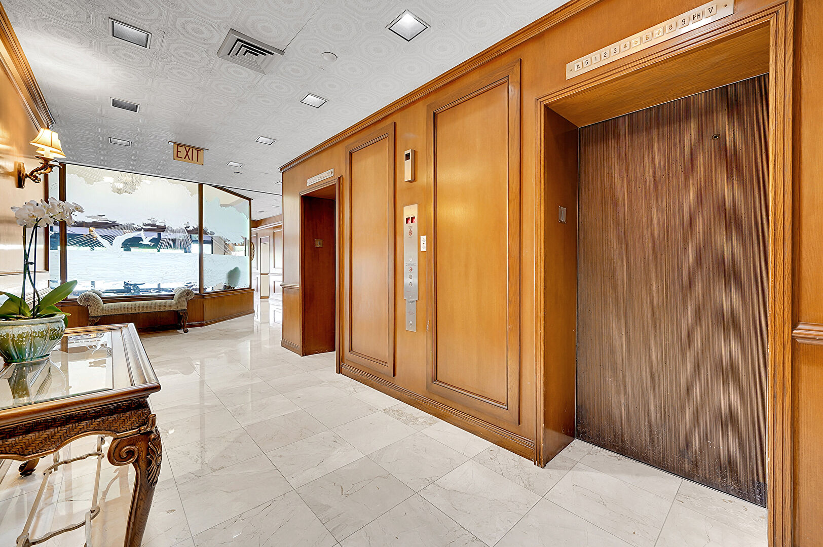 Crown Molding, Elevator, Floor Ceiling Windows, Marble Finish Floor, Natural Light, Paneling Wall, Tile Floor, Vent, Wood Wall, Marble Finish Floor, Natural Light, Notable Chandelier