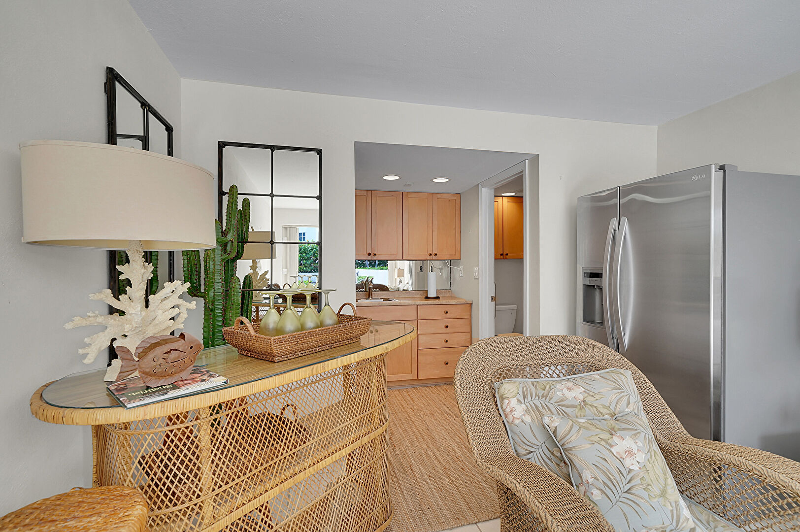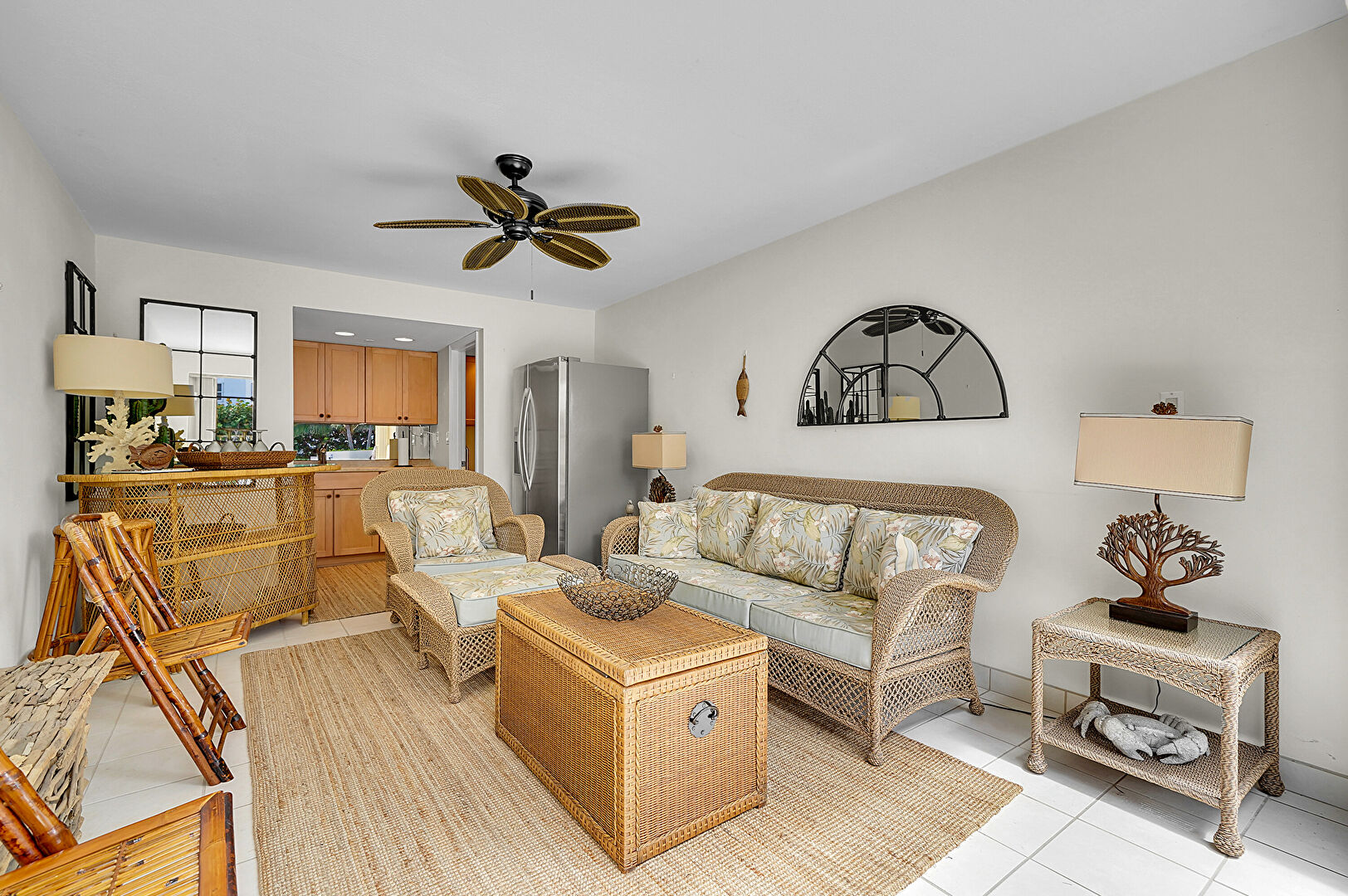 Apartment Complex View, Baseboards Wall, Ceiling Fan, Drywall, Natural Light, Recessed Lighting, Shaker Cabinets, Tile Floor, Ceiling Fan, Drywall, Tile Floor, Wood Finish Floor