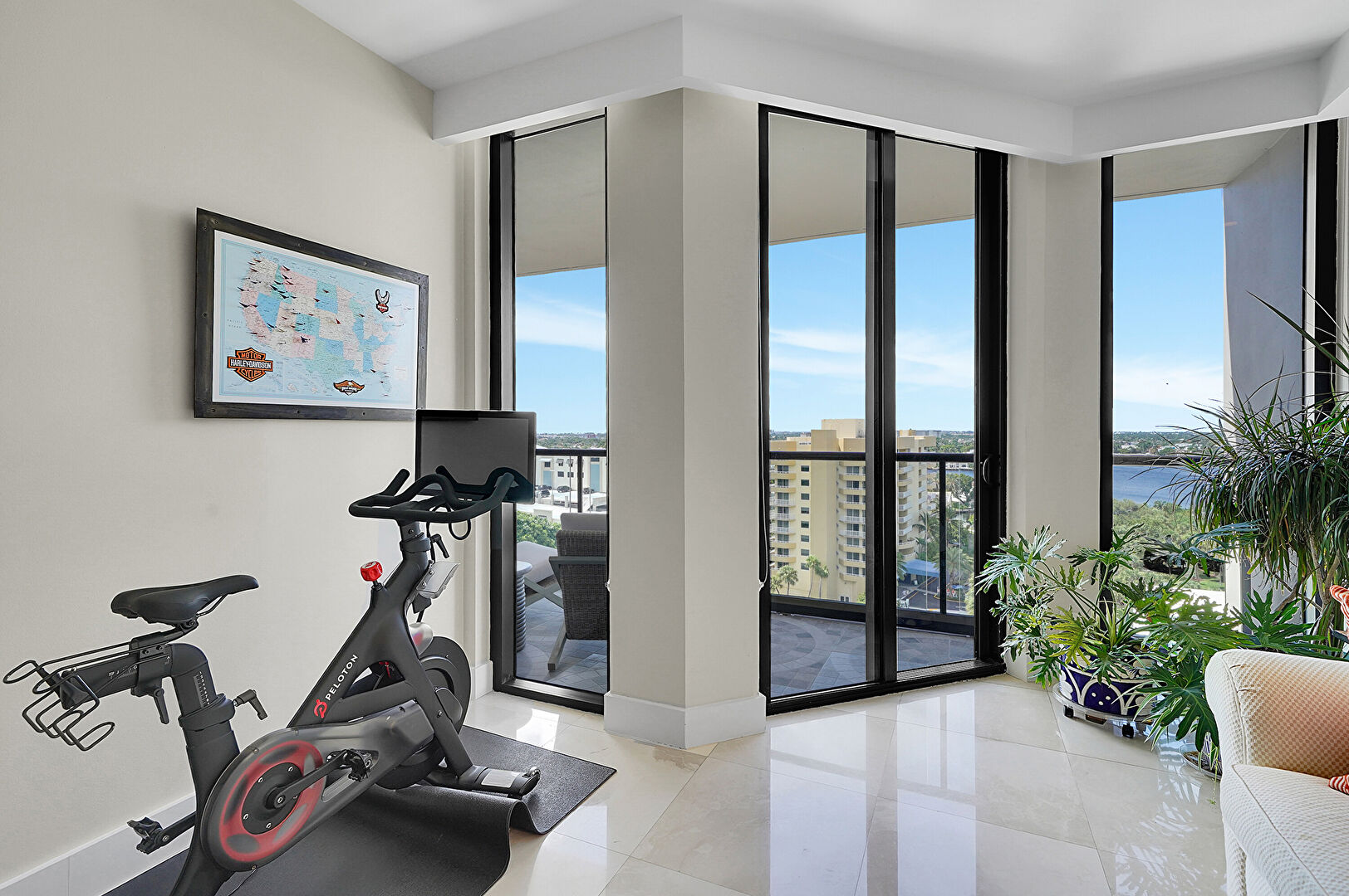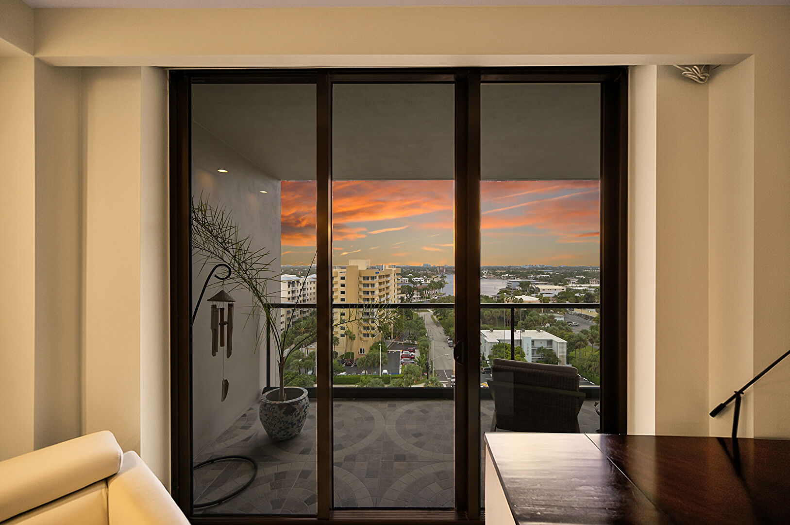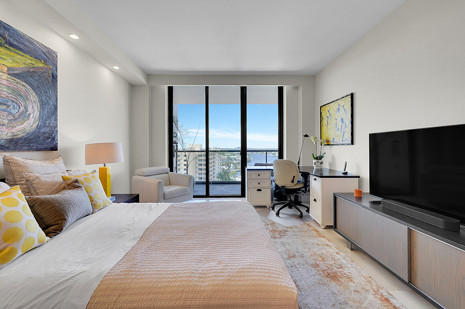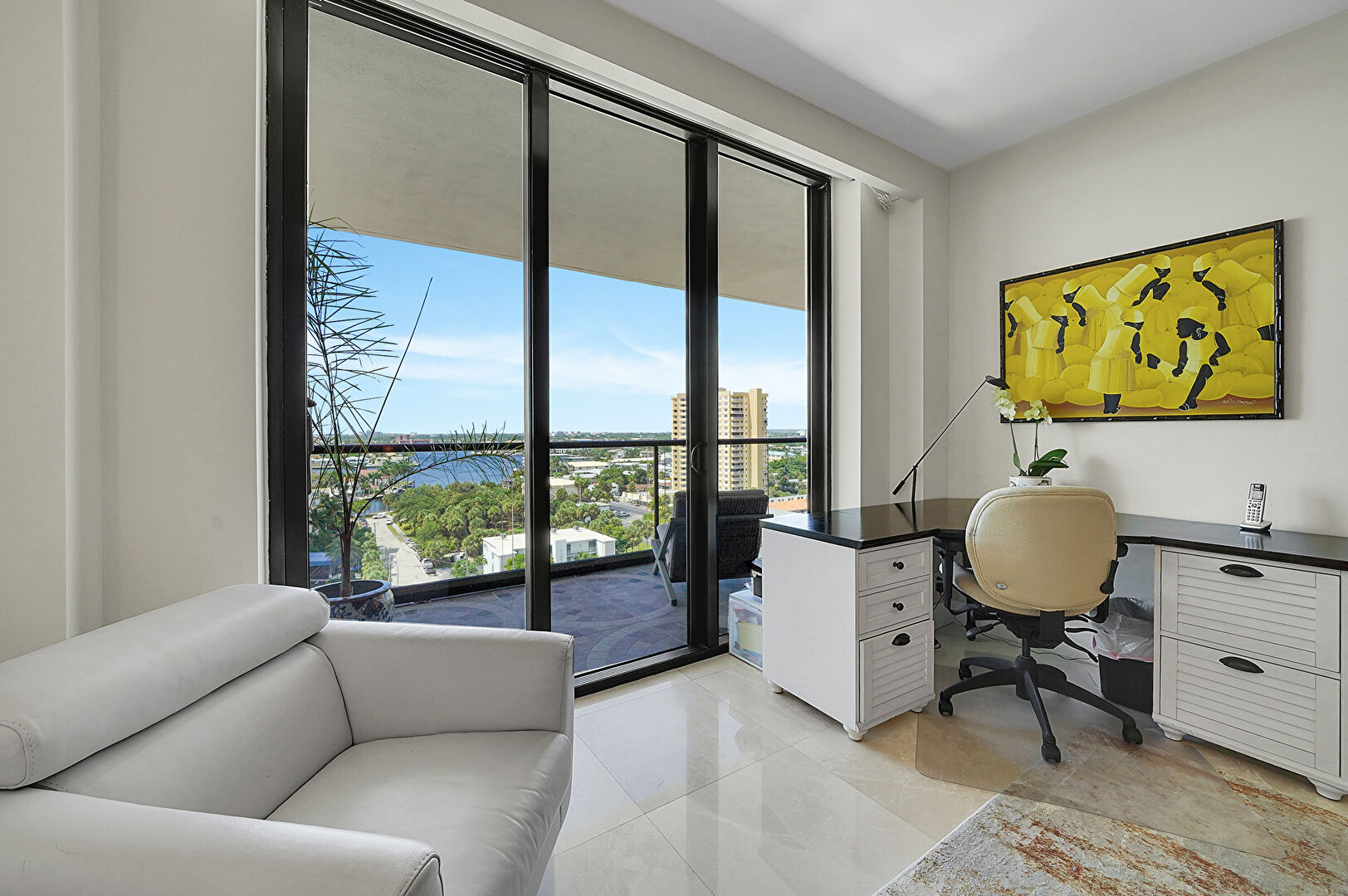 Access To Exterior, Baseboards Wall, Drywall, Floor Ceiling Windows, Natural Light, Office Area, Recessed Lighting, Tile Floor, Vent, Water View, Balcony, Floor Ceiling Windows, Natural Light, Recessed Lighting, Tile Floor, Waterfront