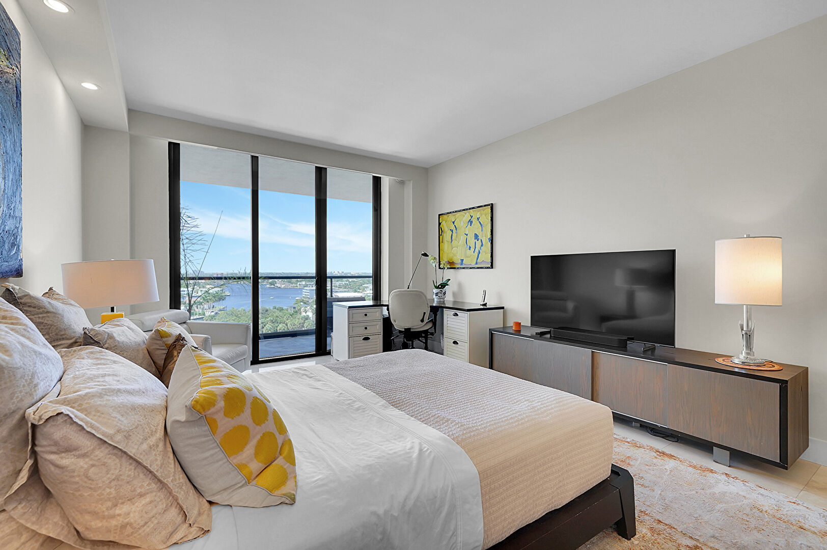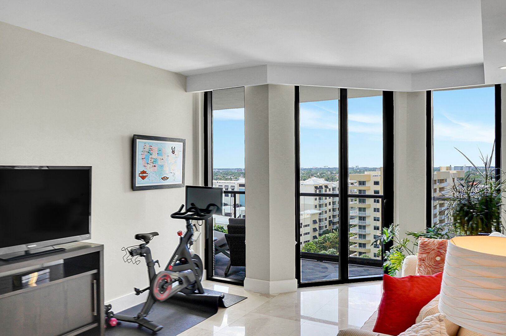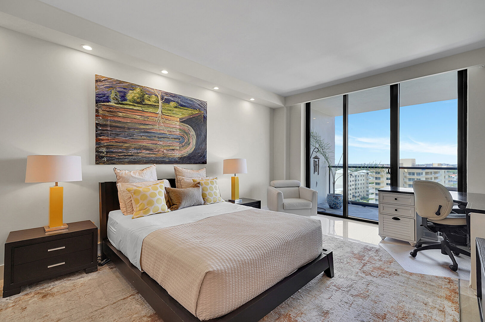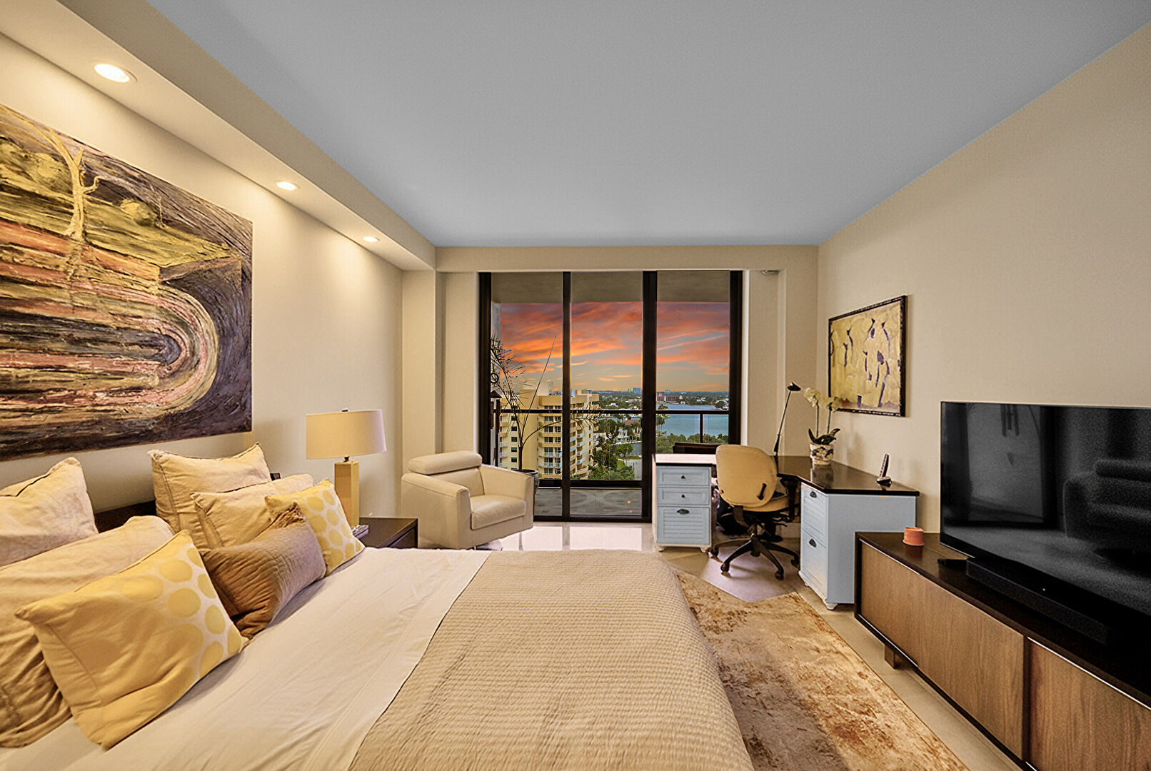Access To Exterior, Baseboards Wall, Drywall, Floor Ceiling Windows, Natural Light, Office Area, Recessed Lighting, Tile Floor, Vent, Water View, Balcony, Floor Ceiling Windows, Natural Light, Recessed Lighting, Tile Floor, Waterfront
