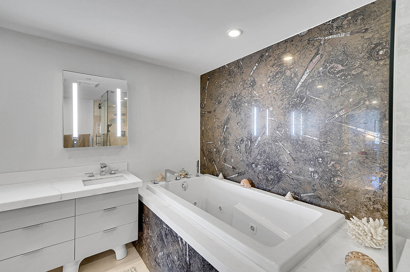 Baseboards Wall, Combined Bath Shower, Drywall, Ensuite Bathroom, Full Bathroom, Half Bathroom, Recessed Lighting, Tile Floor, Tile Wall, Vanity, Natural Light, Vanity, Vent