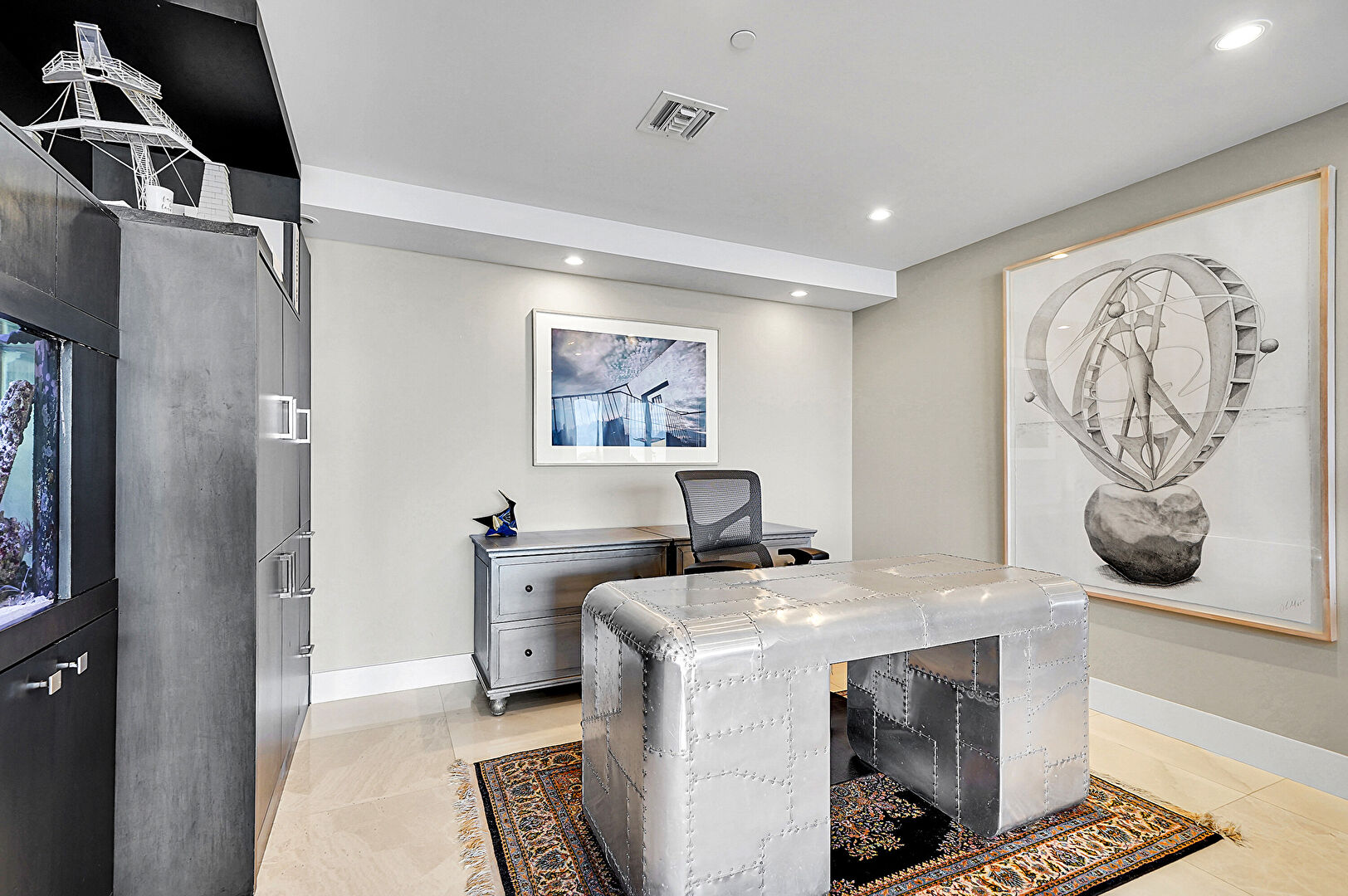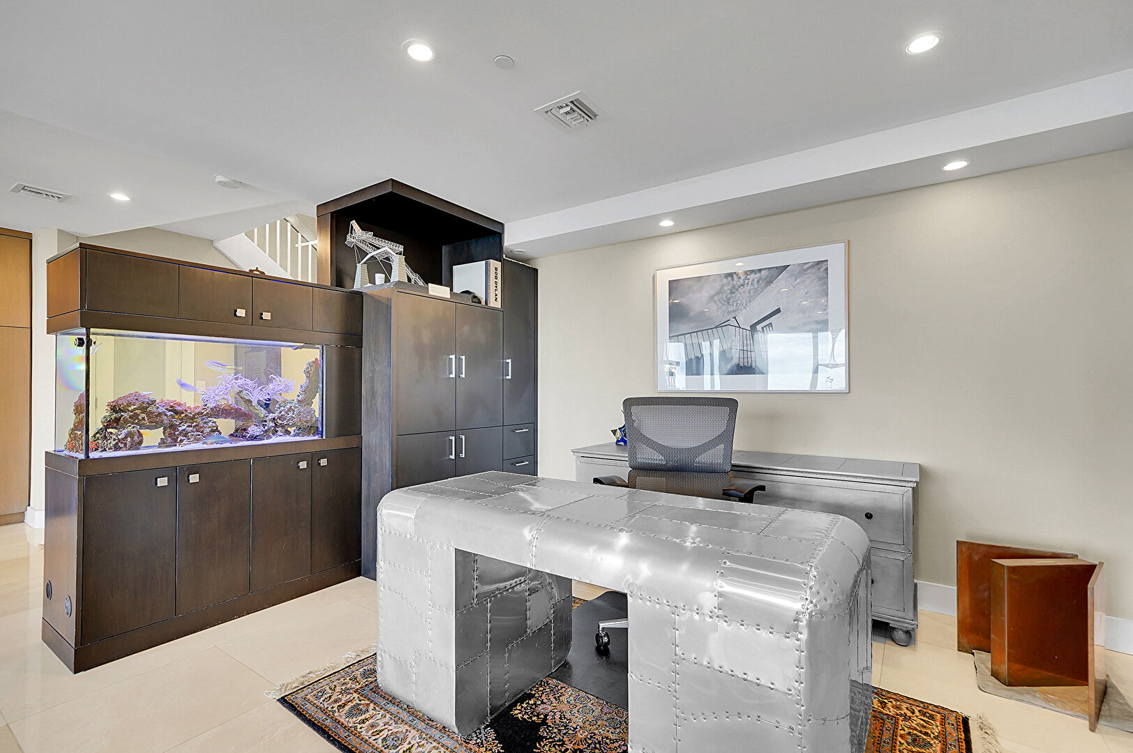 Access To Exterior, Baseboards Wall, Drywall, Floor Ceiling Windows, Natural Light, Office Area, Recessed Lighting, Smoke Carbon Monoxide Detector, Tile Floor, Vent, Water View, Access To Exterior, Drywall, Floor Ceiling Windows, Natural Light, Office Area, Tile Floor