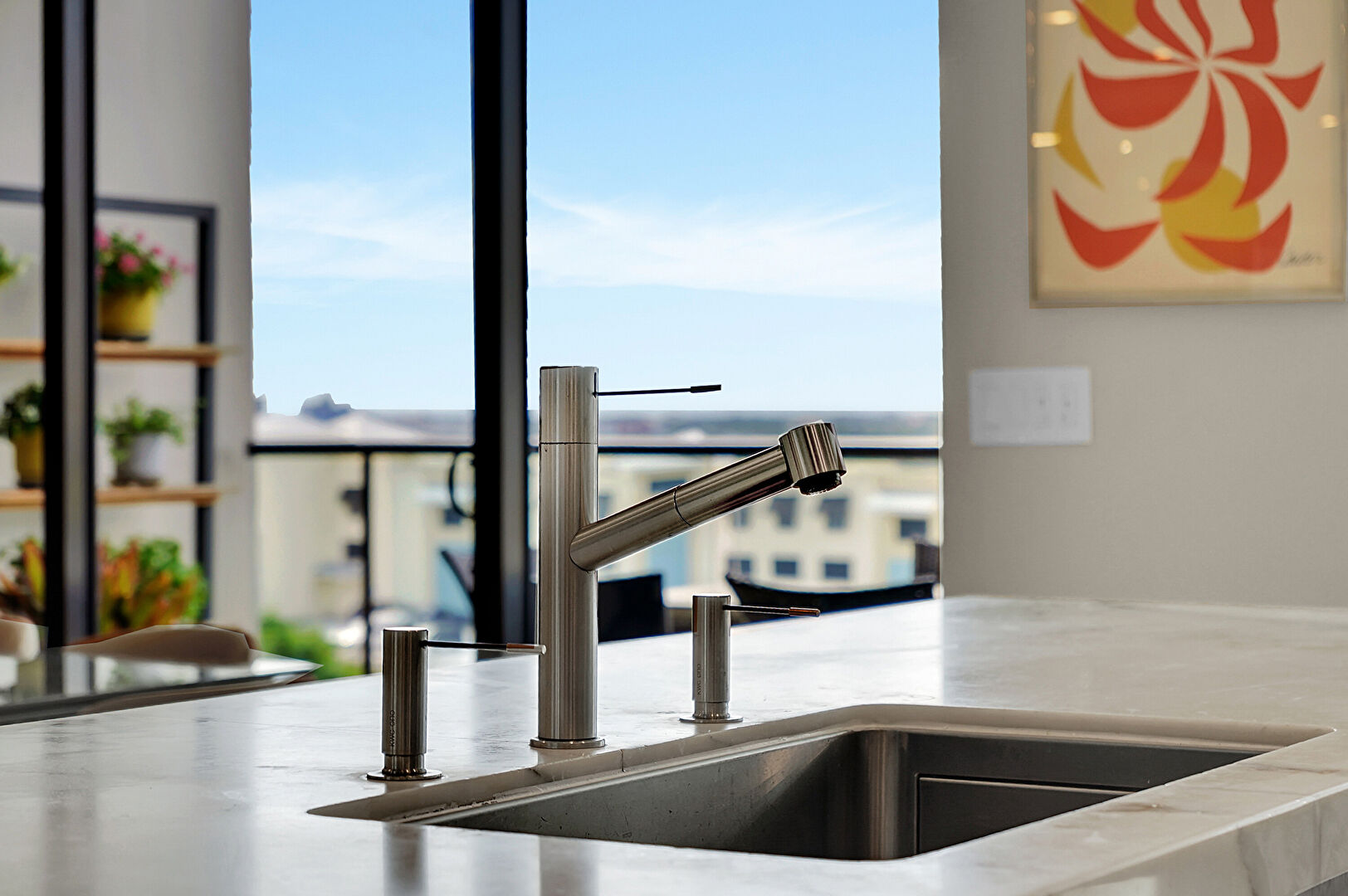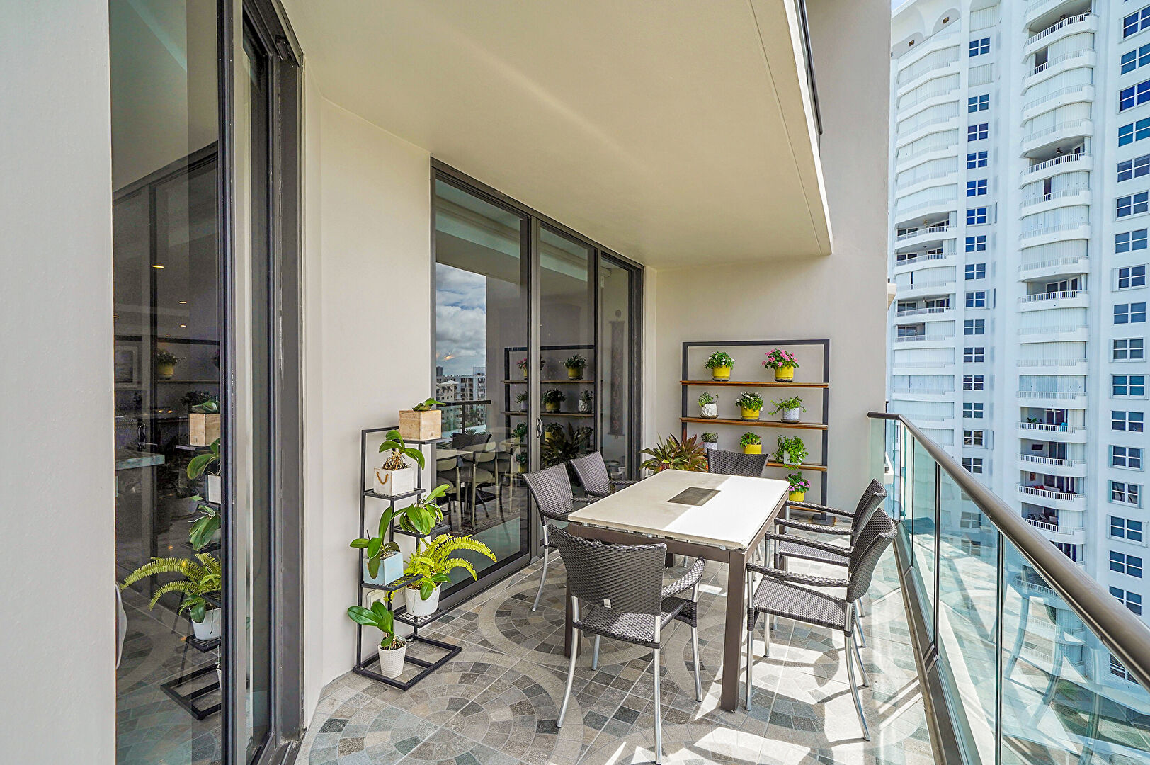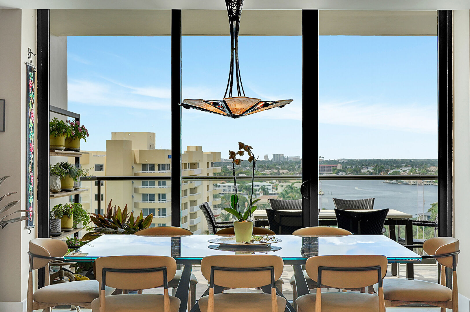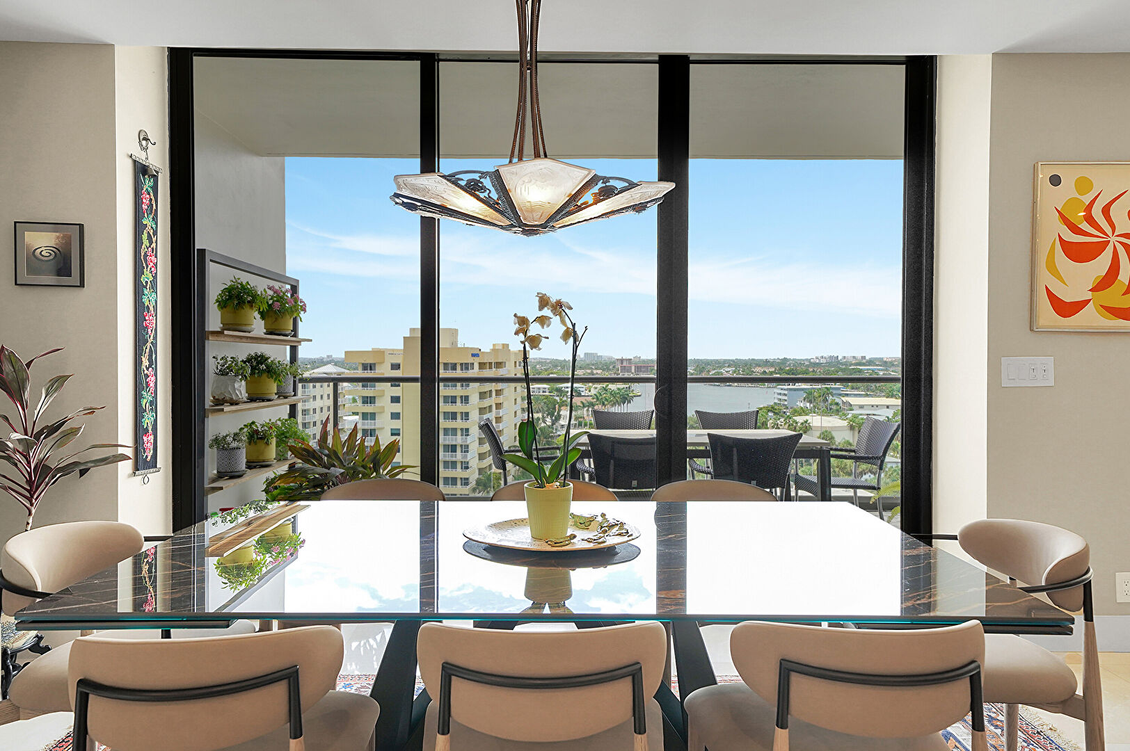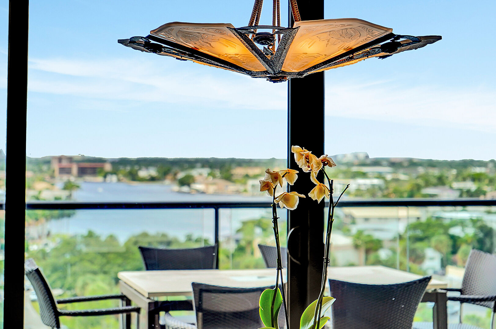 Balcony, Baseboards Wall, City View, Double Oven, Drywall, Floor Ceiling Windows, Natural Light, Notable Chandelier, Outdoor Dining Area, Recessed Lighting, Tile Floor, Vent, Water View, Wood Finish Floor, Balcony, Drywall, Floor Ceiling Windows, Natural Light, Notable Chandelier, Recessed Lighting, Sunroom