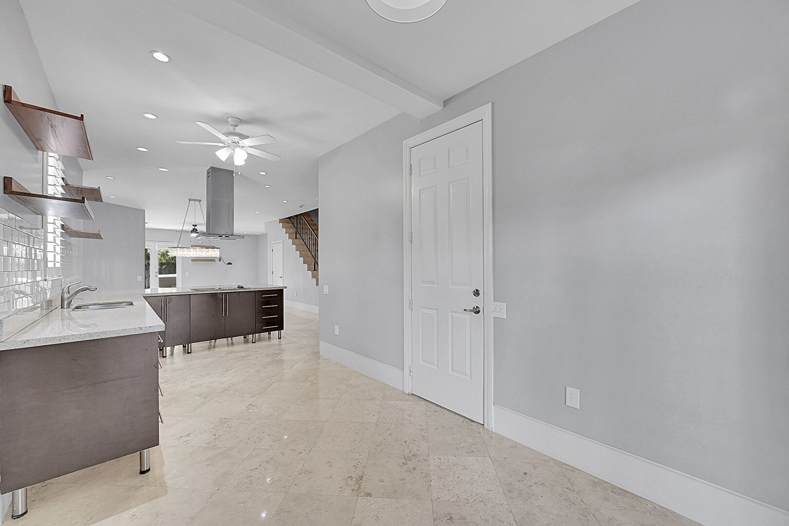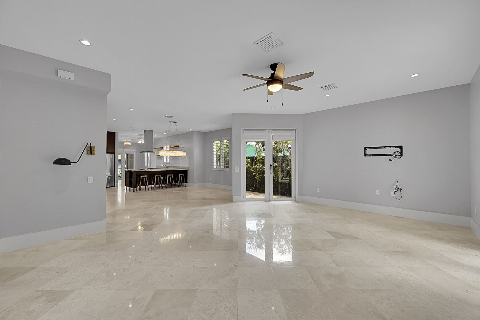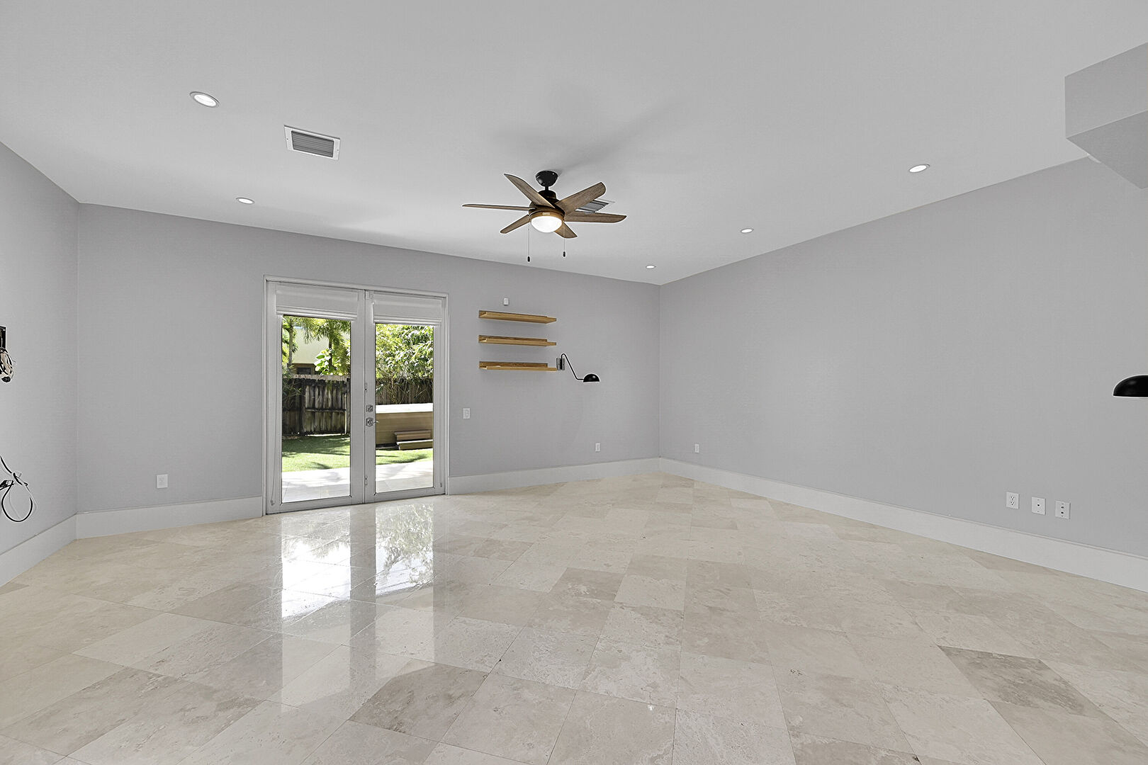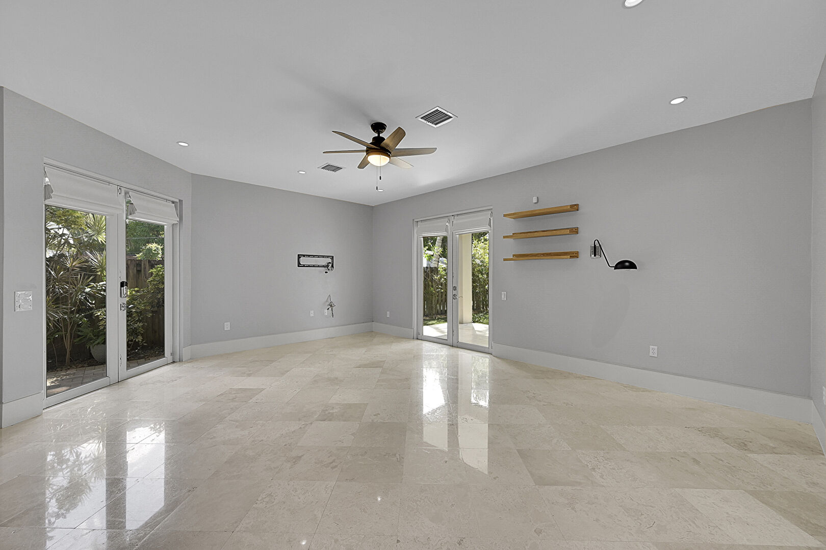Baseboards Wall, Ceiling Fan, Drywall, French Doors, Natural Light, Recessed Lighting, Vent, Ceiling Fan, Drywall, Stairs, Vent