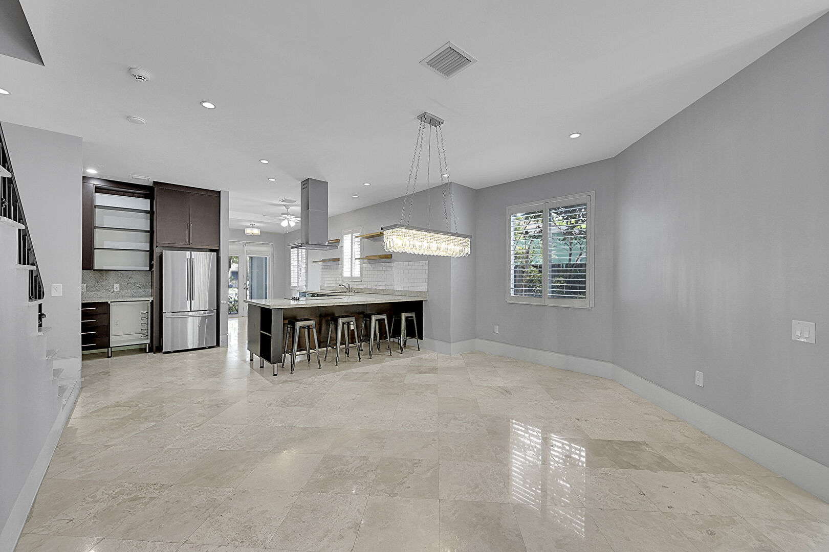 Baseboards Wall, Dark Brown Cabinets, Drywall, Flat Panel Cabinets, Glass Insert Cabinets, Kitchen Bar, Kitchen Peninsula, Natural Light, Notable Chandelier, Opens To Living Area, Recessed Lighting, Smoke Carbon Monoxide Detector, Stairs, Vent, Ceiling Fan, G Shaped Kitchen, Pendant Lighting