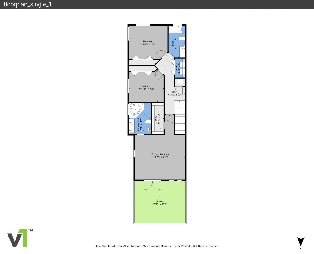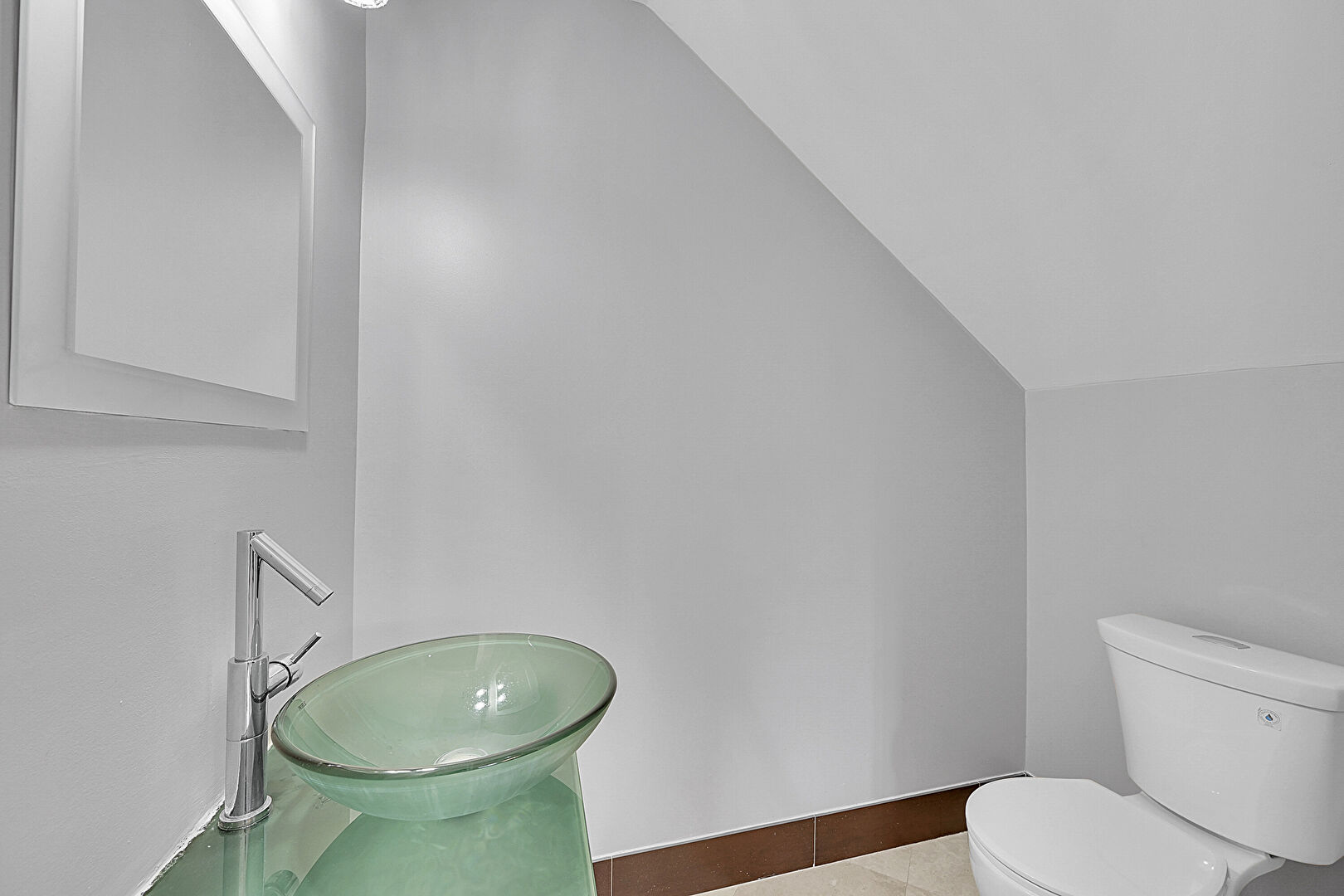 Baseboards Wall, Combined Bath Shower, Drywall, Full Bathroom, Half Bathroom, Natural Light, Tile Floor, Vanity, Vent, Tile Floor, Vaulted Ceiling